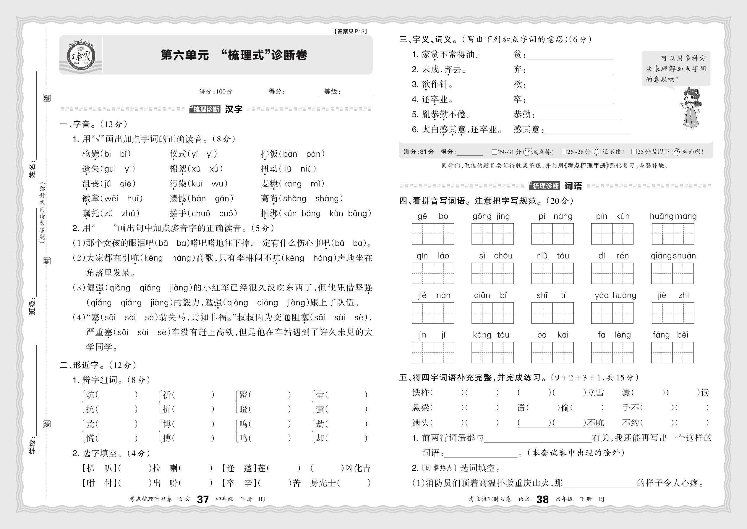 2024春下册四年级语文人教版 第六单元 “梳理式”诊断卷