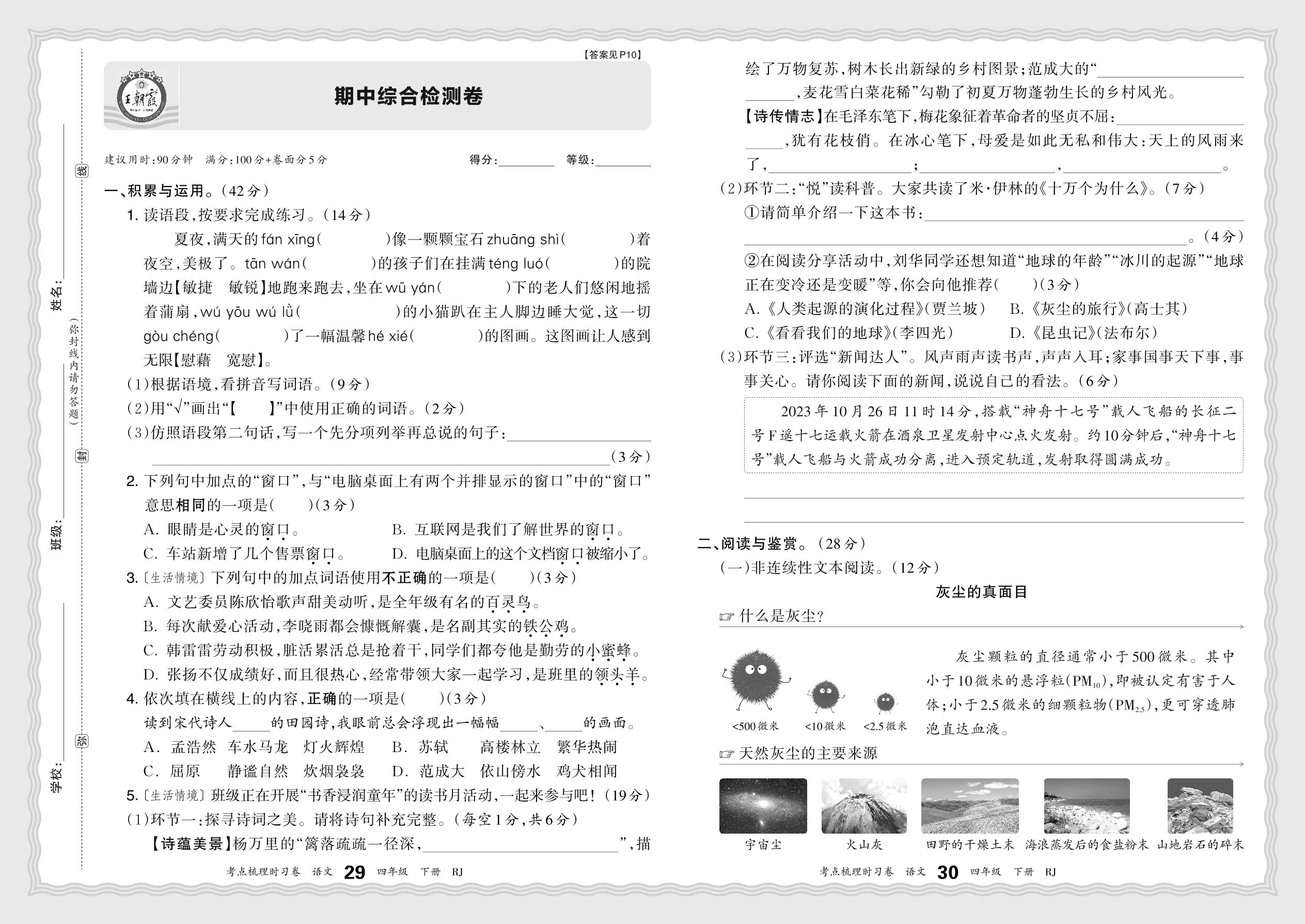 四年级语文人教版下册期中卷