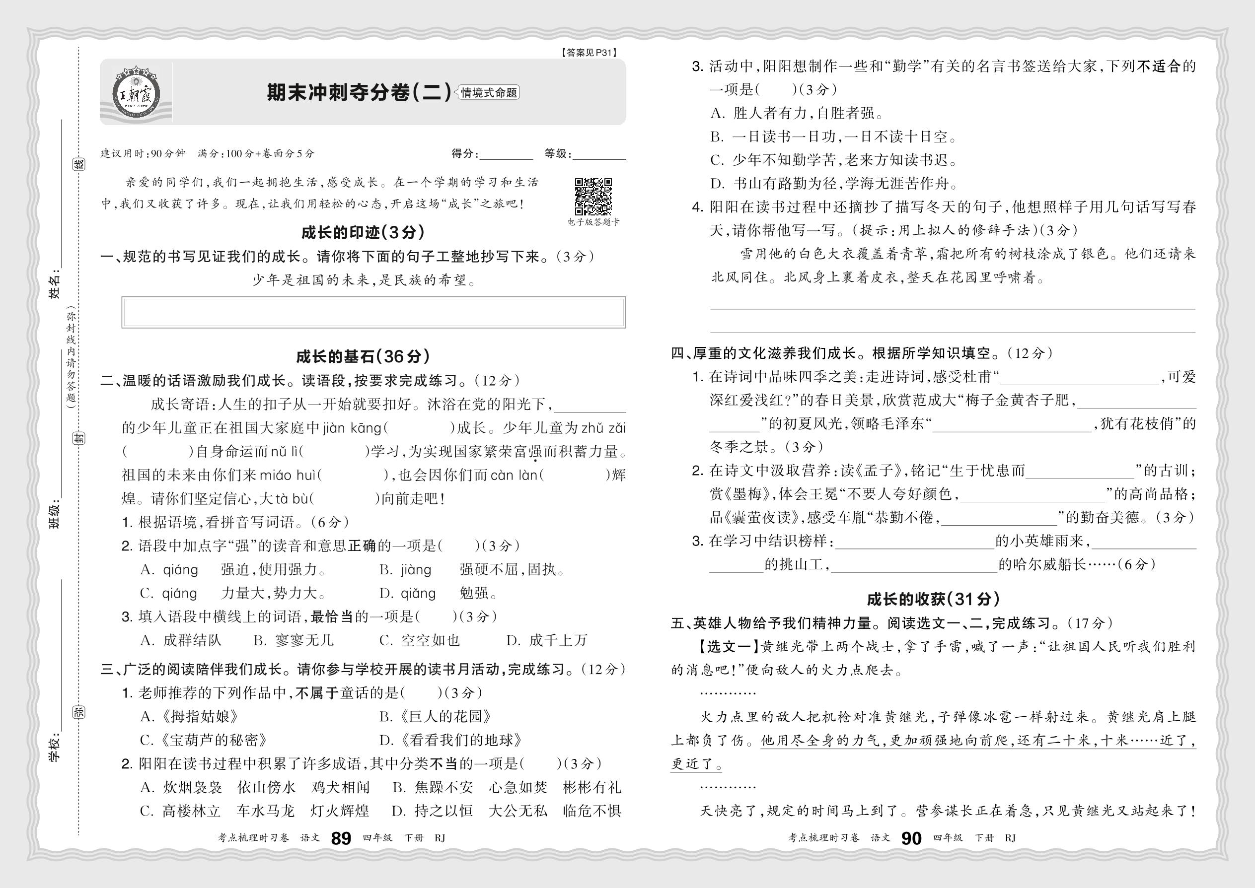 2024春下册四年级语文人教版 期末冲刺夺分卷(二)