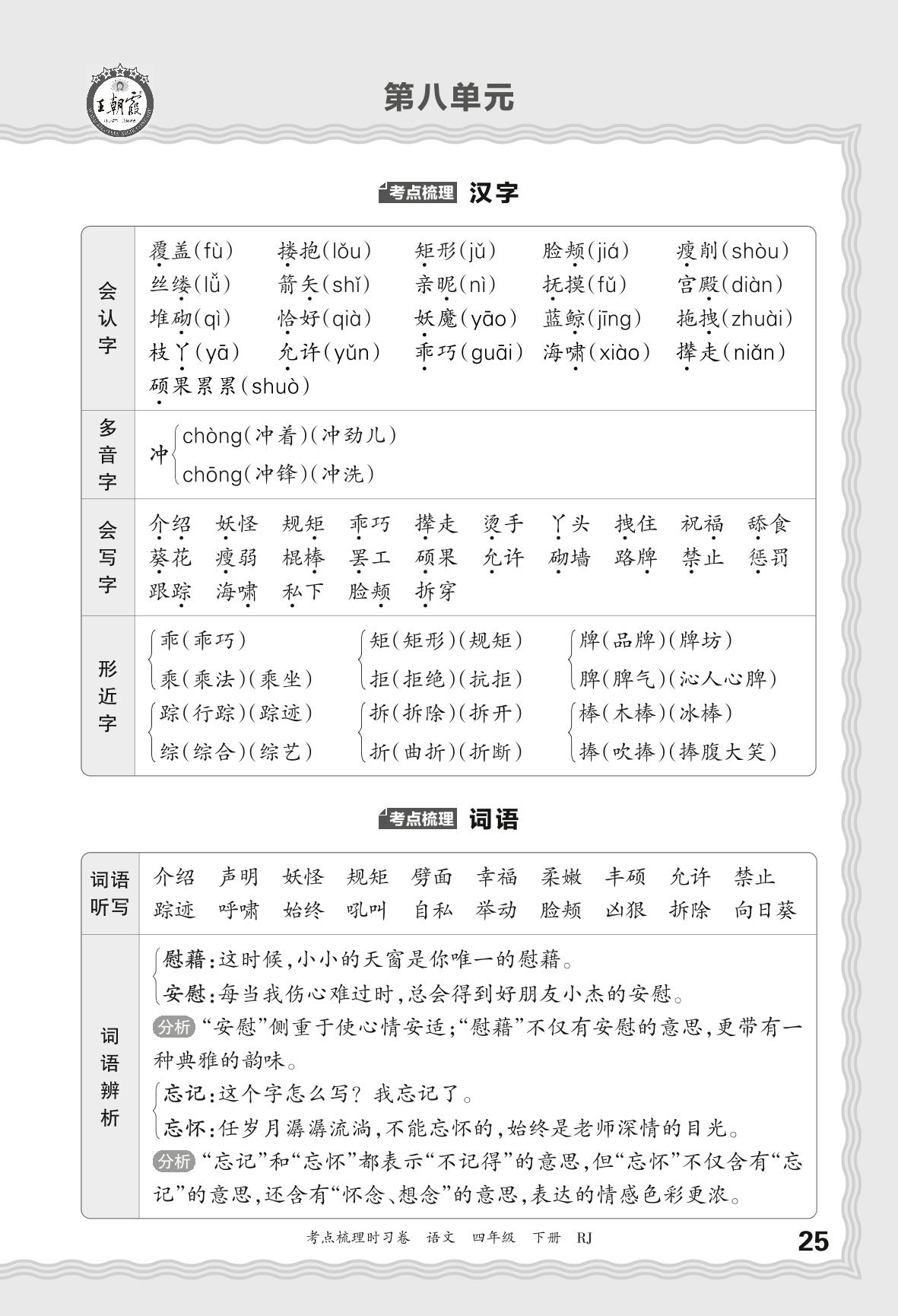 2024春下册四年级语文人教版 考点梳理手册——第八单元