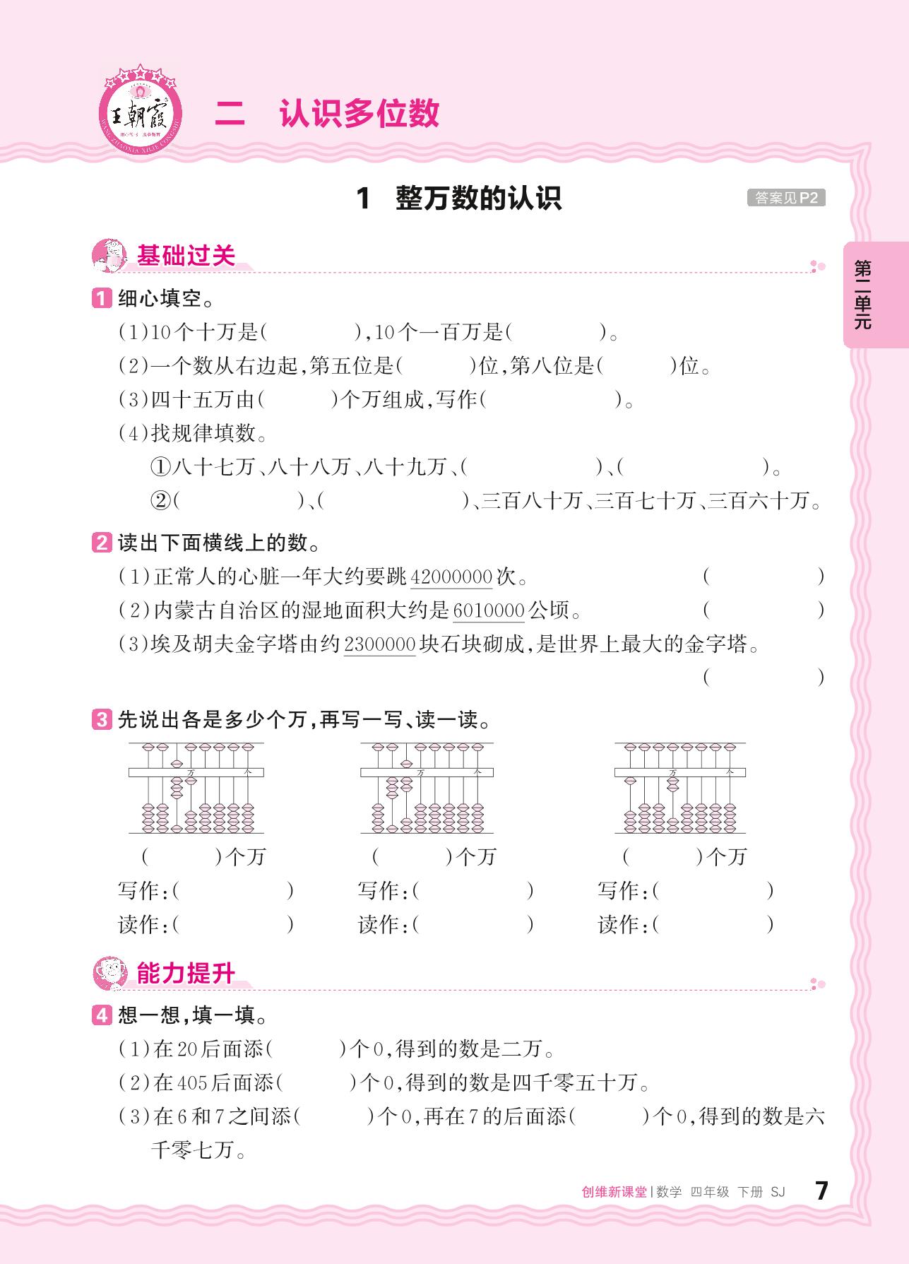 2024春下册四年级数学苏教版 第二单元 认识多位数——1. 整万数的认识