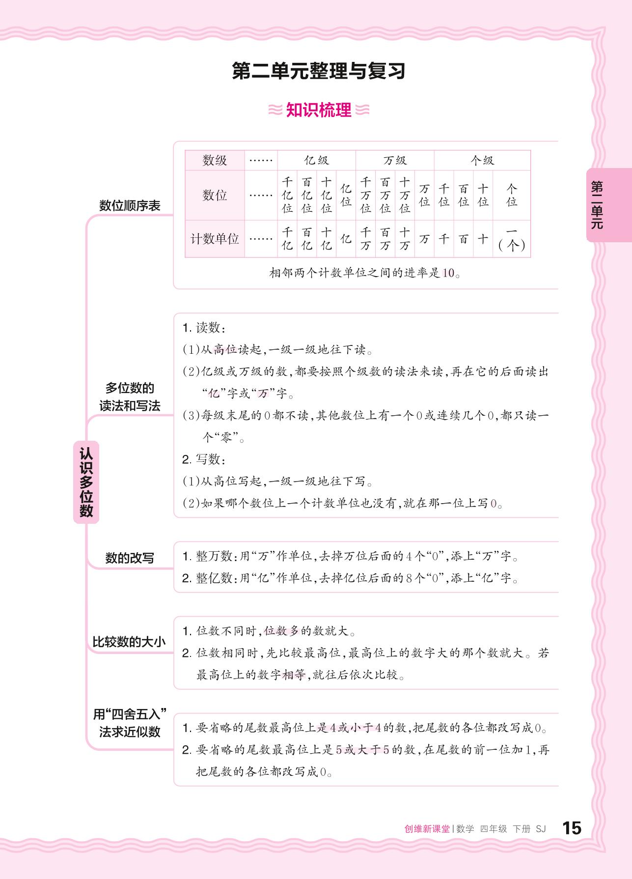 2024春下册四年级数学苏教版 第二单元整理与复习