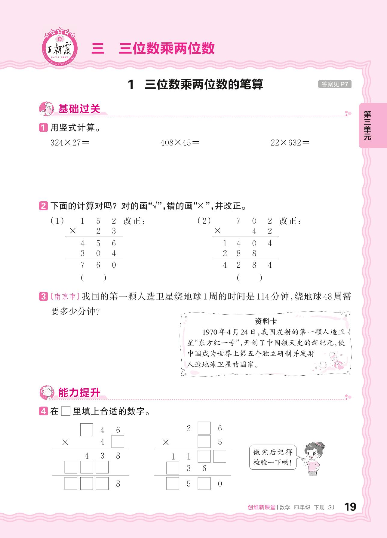 2024春下册四年级数学苏教版 第三单元 三位数乘两位数——1. 三位数乘两位数的笔算_R240123112858337