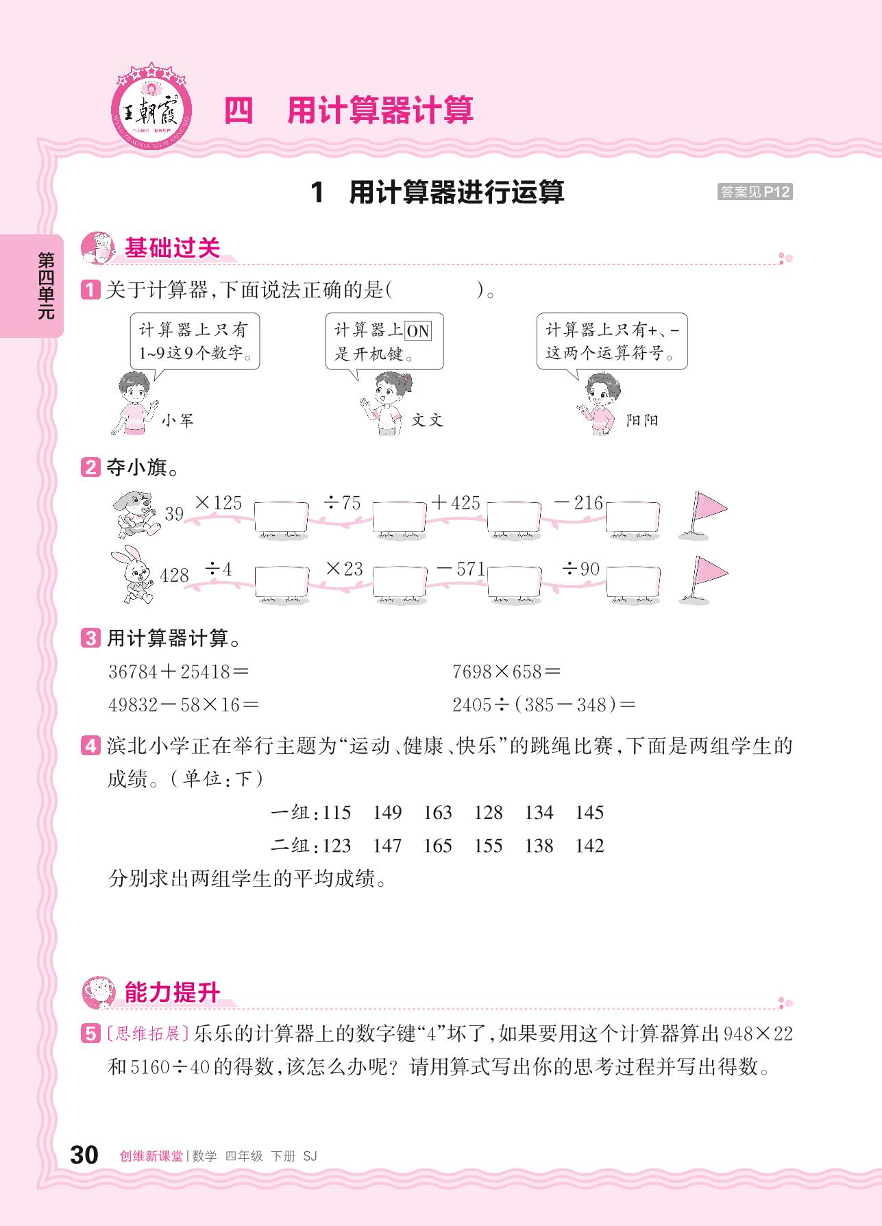 2024春下册四年级数学苏教版 第四单元 用计算器计算——1. 用计算器进行运算