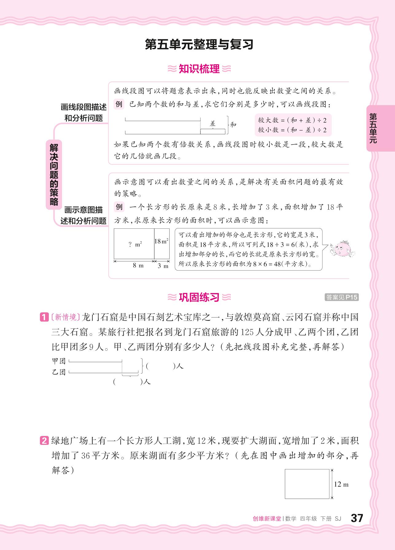 2024春下册四年级数学苏教版 第五单元整理与复习
