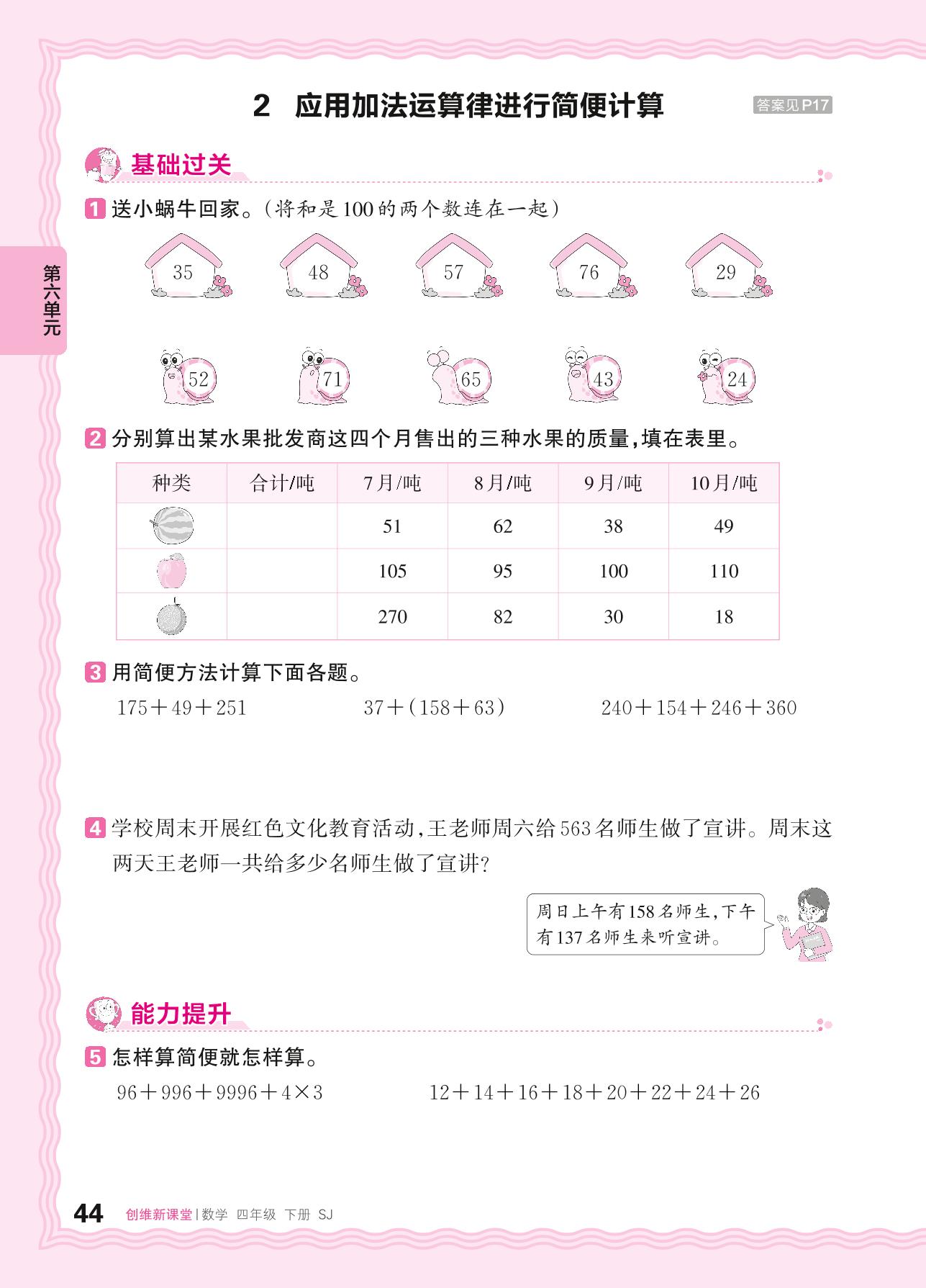 2024春下册四年级数学苏教版 第六单元 运算律——2. 应用加法运算律进行简便计算_R240123112907241
