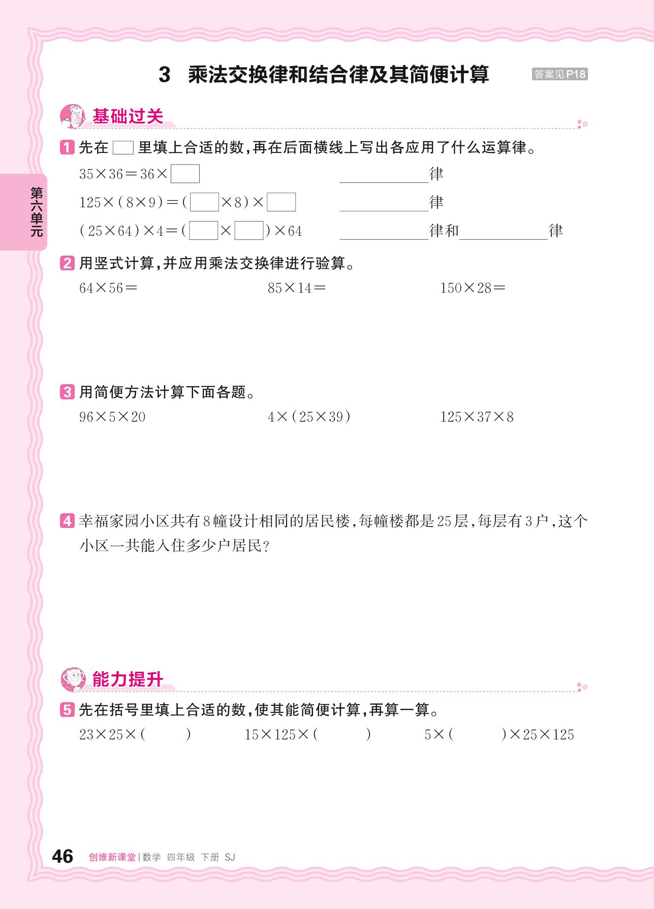2024春下册四年级数学苏教版 第六单元 运算律——3. 乘法交换律和结合律及其简便计算