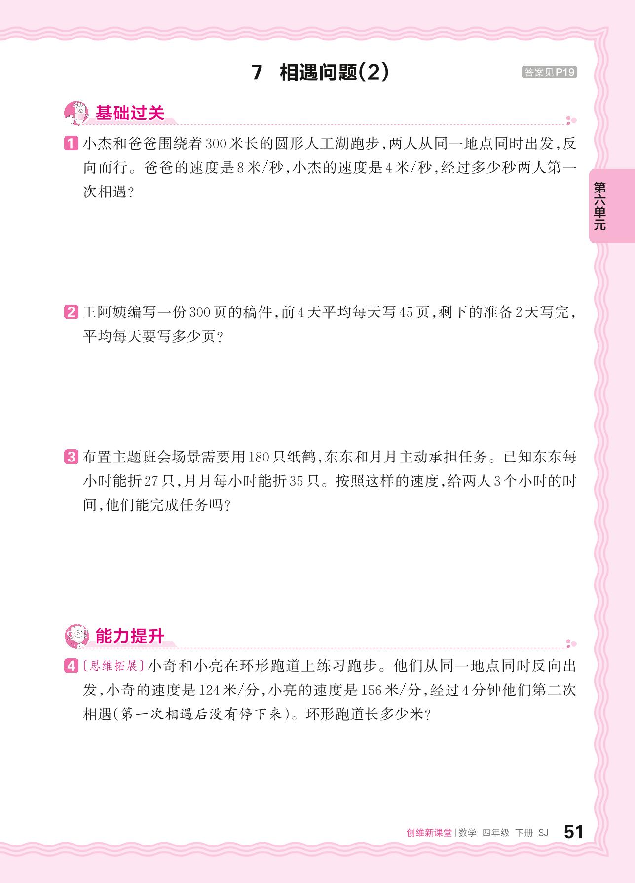 2024春下册四年级数学苏教版 第六单元 运算律——7. 相遇问题(2)