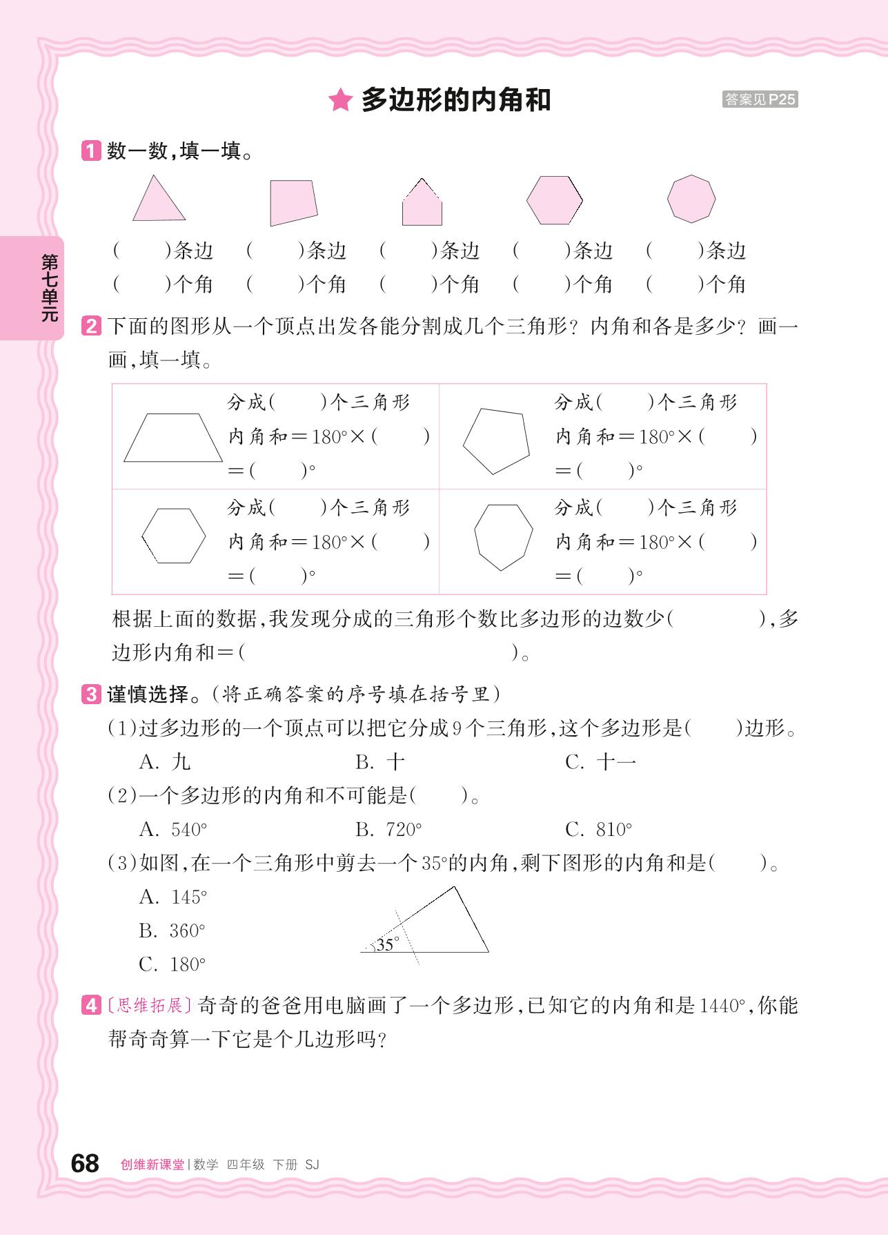 2024春下册四年级数学苏教版 第七单元 三角形、平行四边形和梯形——多边形的内角和