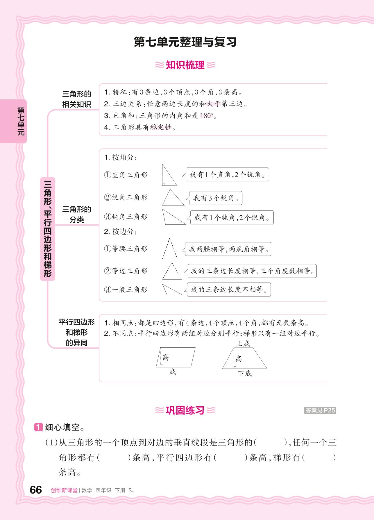 2024春下册四年级数学苏教版 第七单元整理与复习