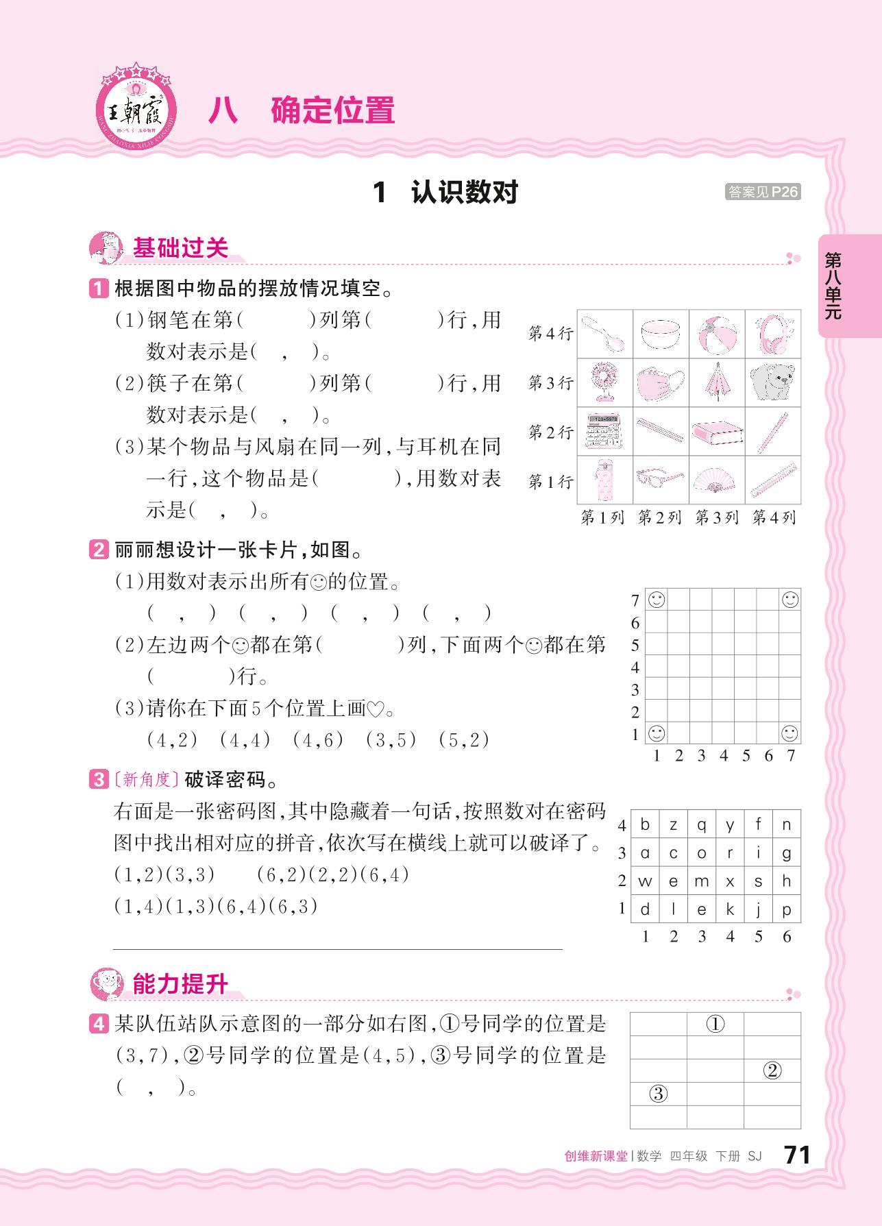 2024春下册四年级数学苏教版 第八单元 确定位置——1. 认识数对