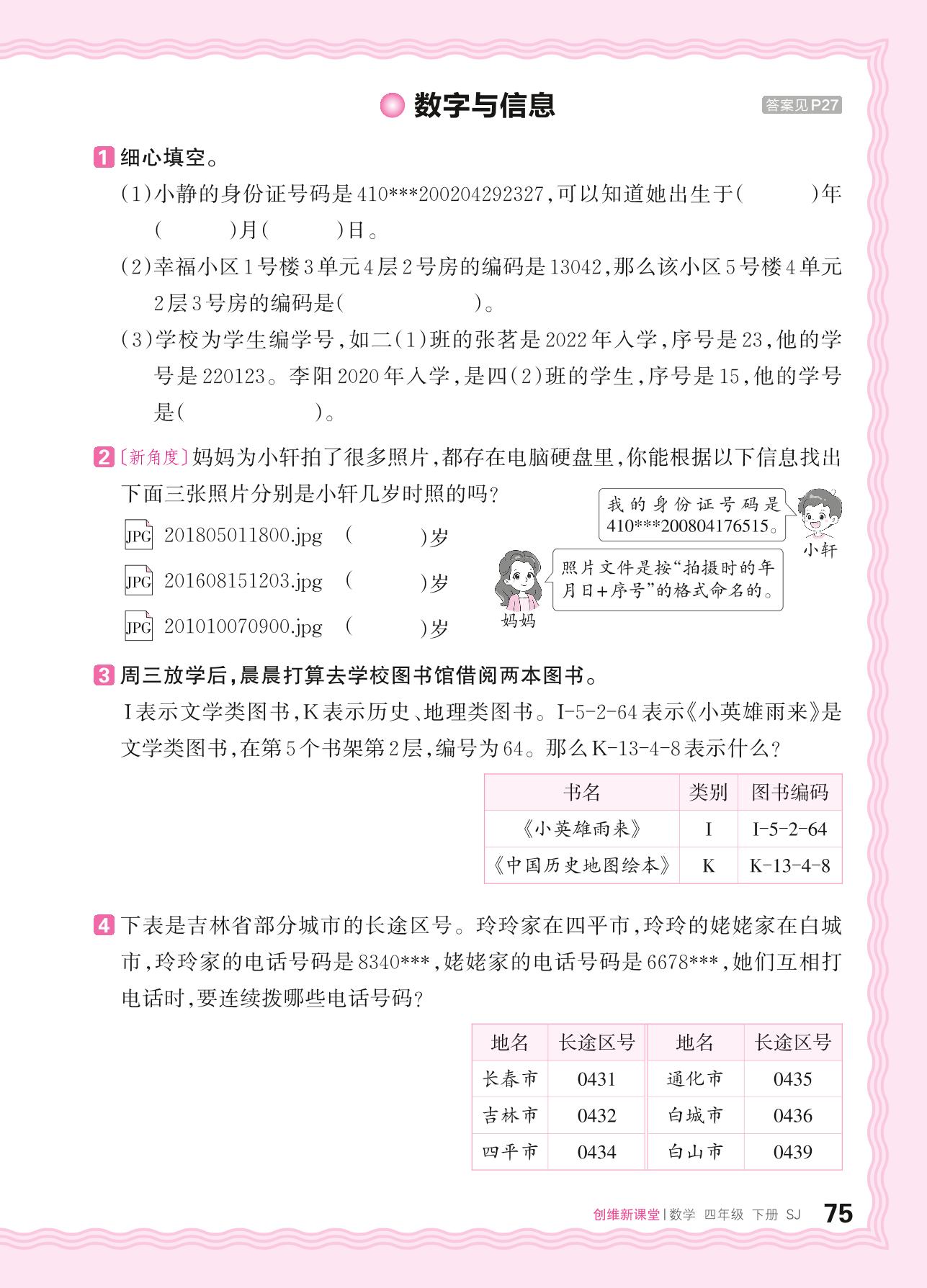 2024春下册四年级数学苏教版 第八单元 确定位置——数字与信息