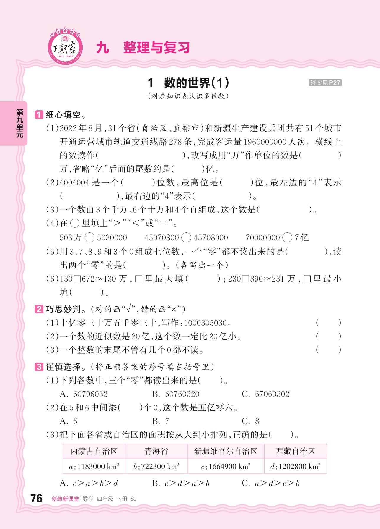 2024春下册四年级数学苏教版 第九单元 整理与复习——1. 数的世界(1)_R240123112918904