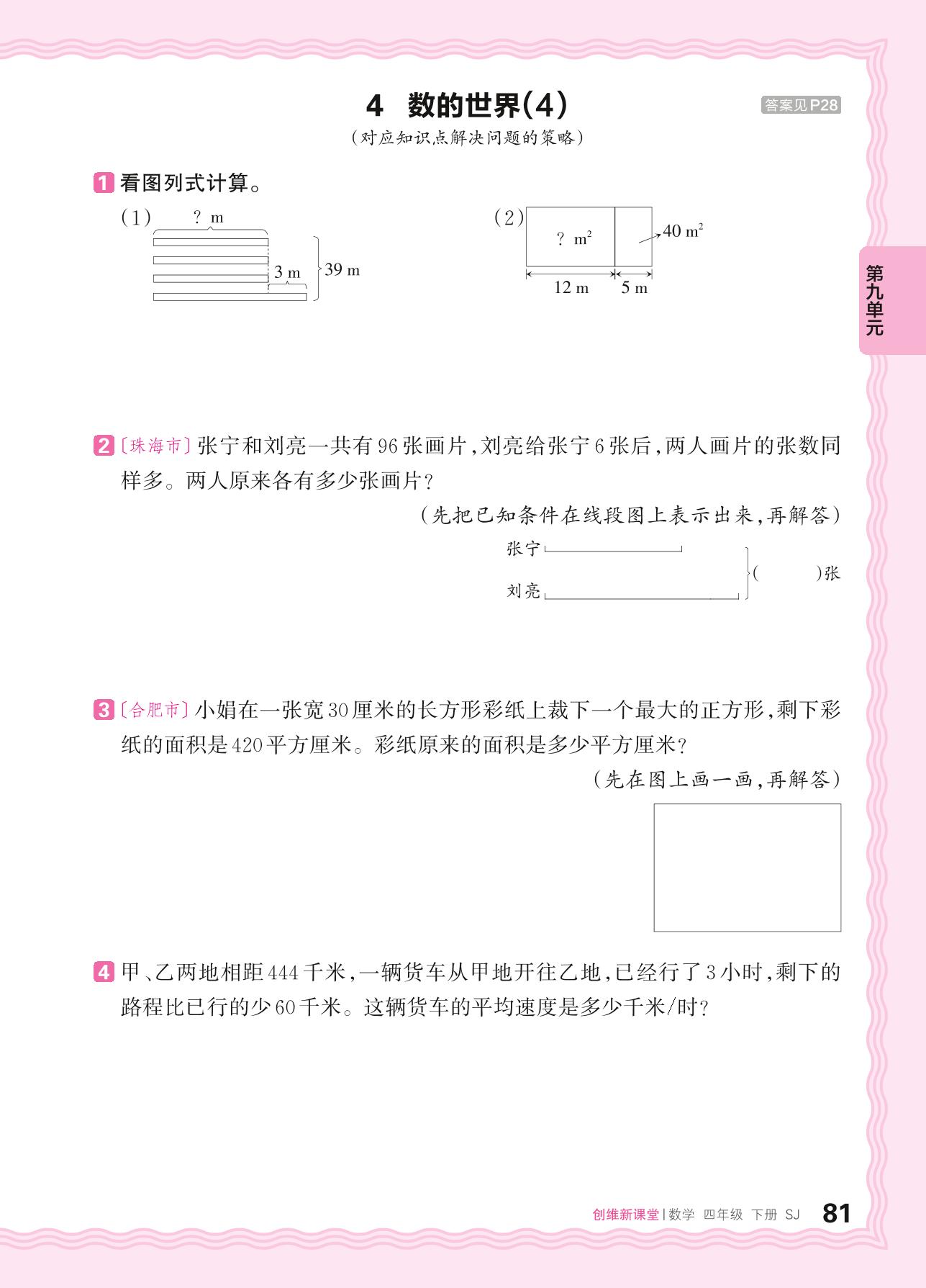 2024春下册四年级数学苏教版 第九单元 整理与复习——4. 数的世界(4)