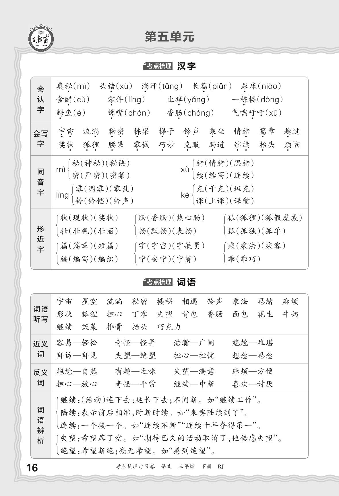 2024春下册三年级语文人教版 考点梳理手册——第五单元