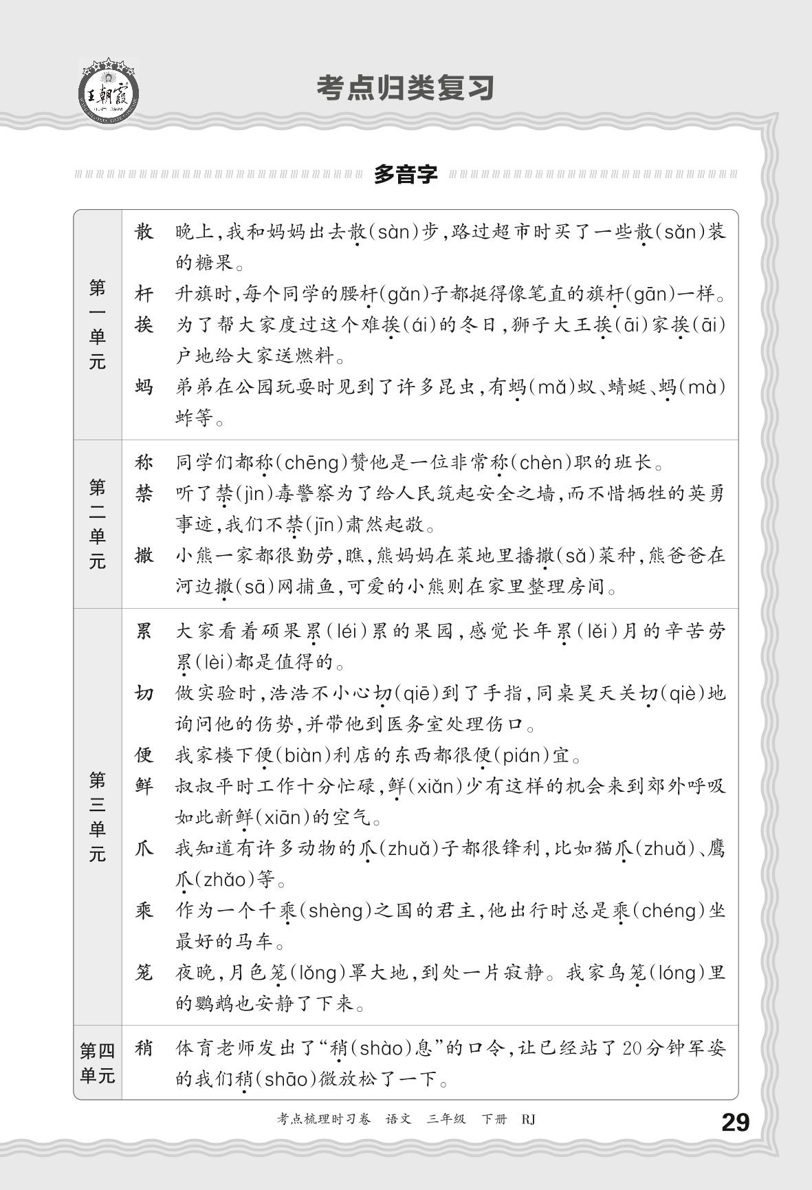 2024春下册三年级语文人教版 考点梳理手册——考点归类复习