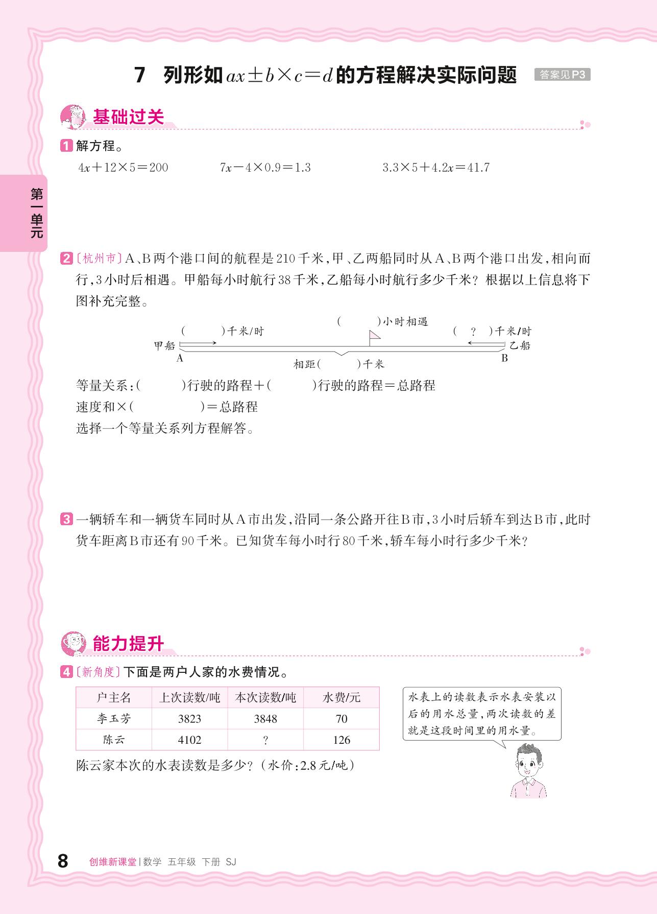 2024春下册五年级数学苏教版 第一单元 简易方程——7. 列形如ax±b×c=d的方程解决实际问题