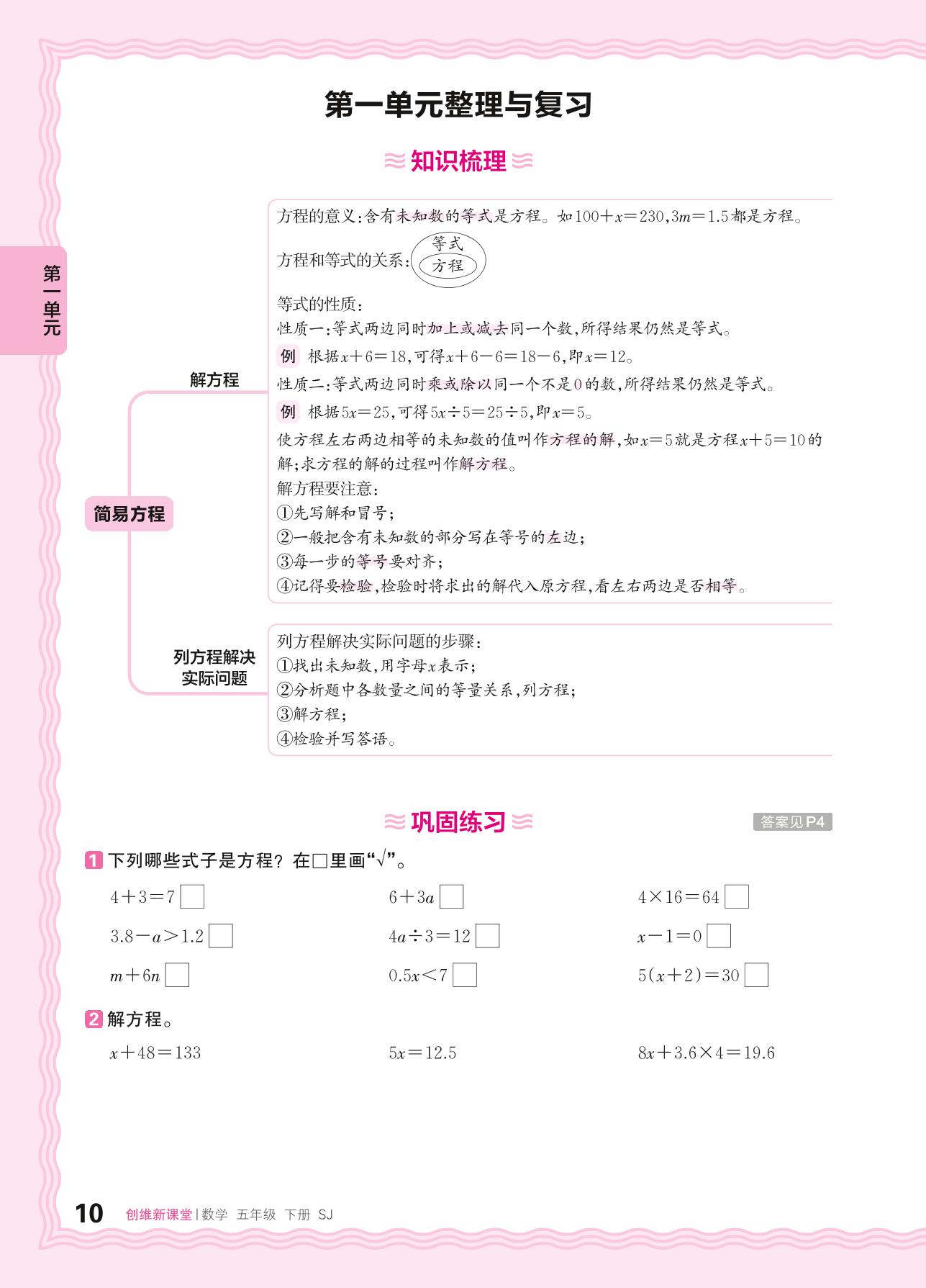 2024春下册五年级数学苏教版 第一单元整理与复习