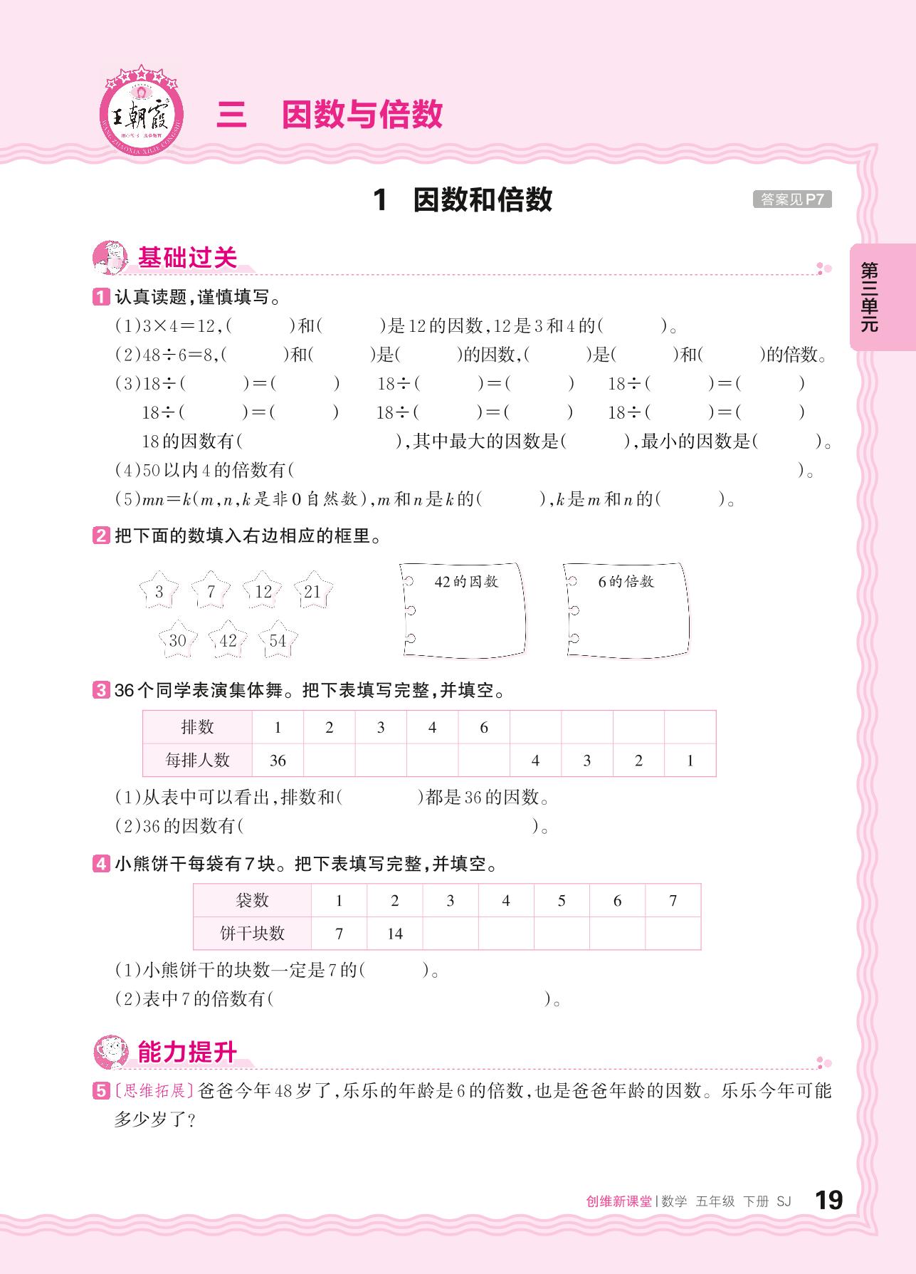 2024春下册五年级数学苏教版 第三单元 因数与倍数——1. 因数和倍数
