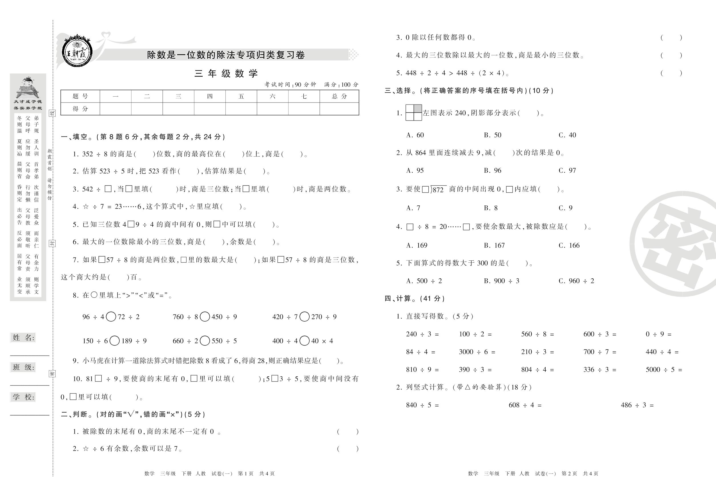 王朝霞期末专项卷三年级下册数学(人教版)_R210804103406【1】