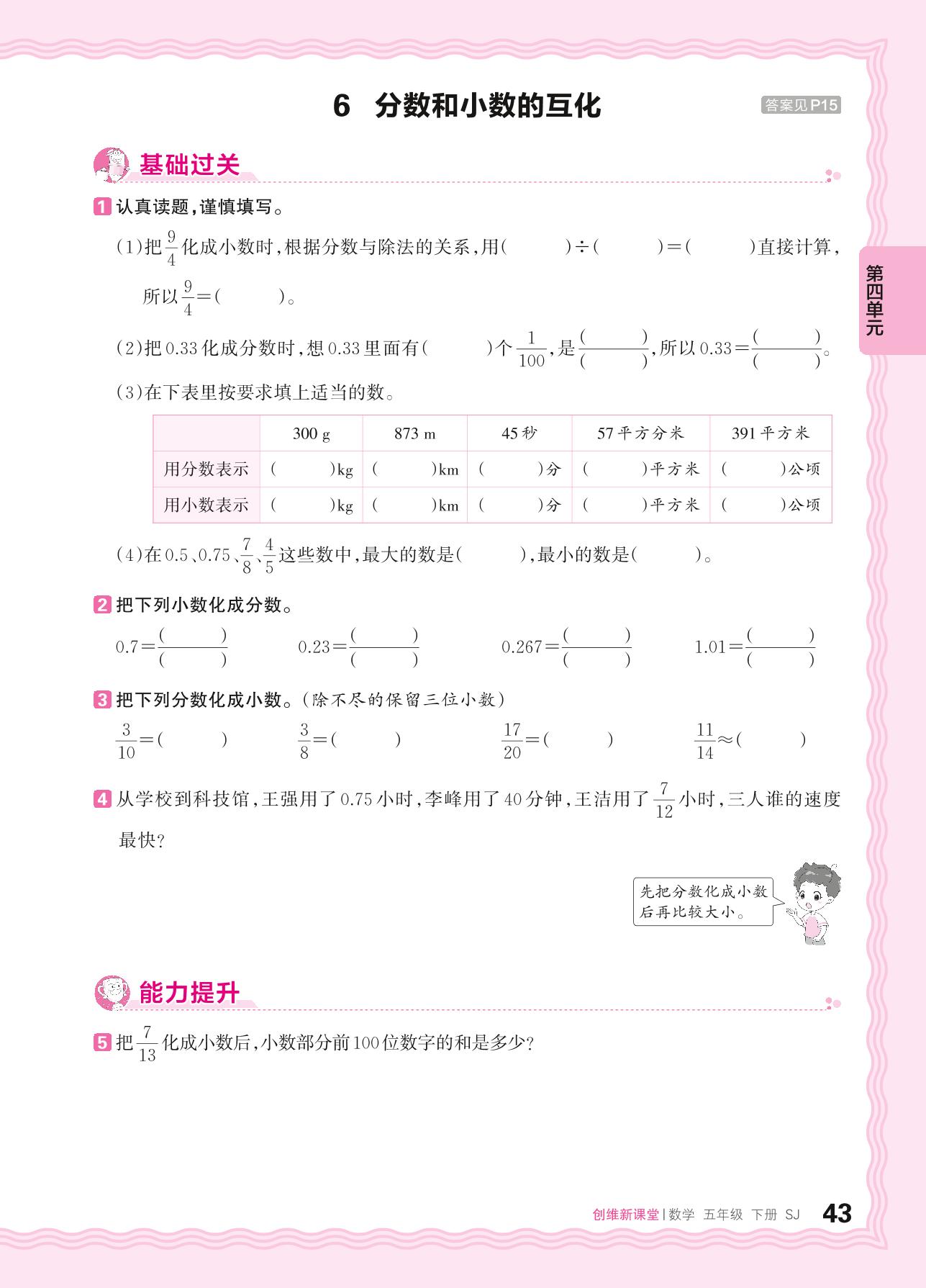 2024春下册五年级数学苏教版 第四单元 分数的意义和性质——6. 分数和小数的互化