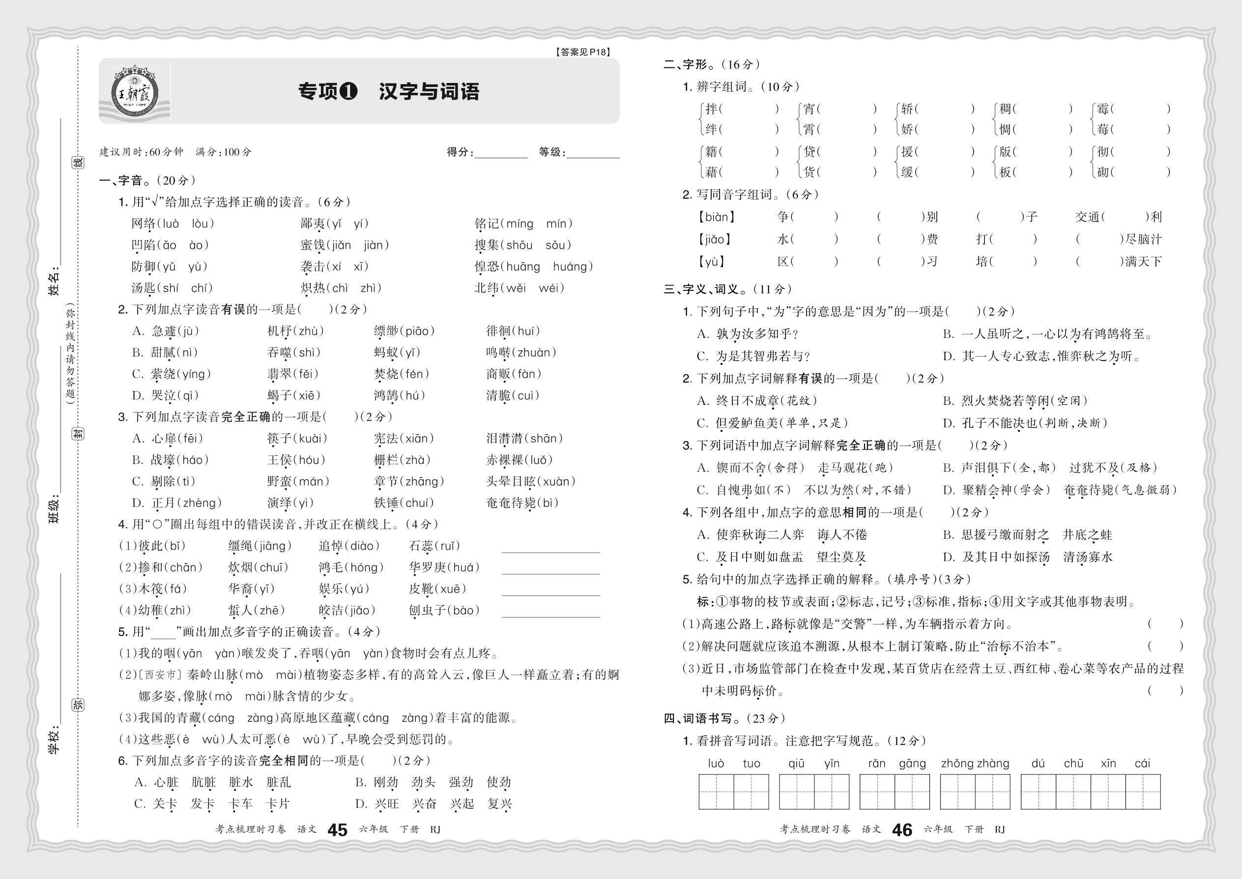 2024春下册六年级语文人教版 期末专项卷KD版·汉字与词语【1】