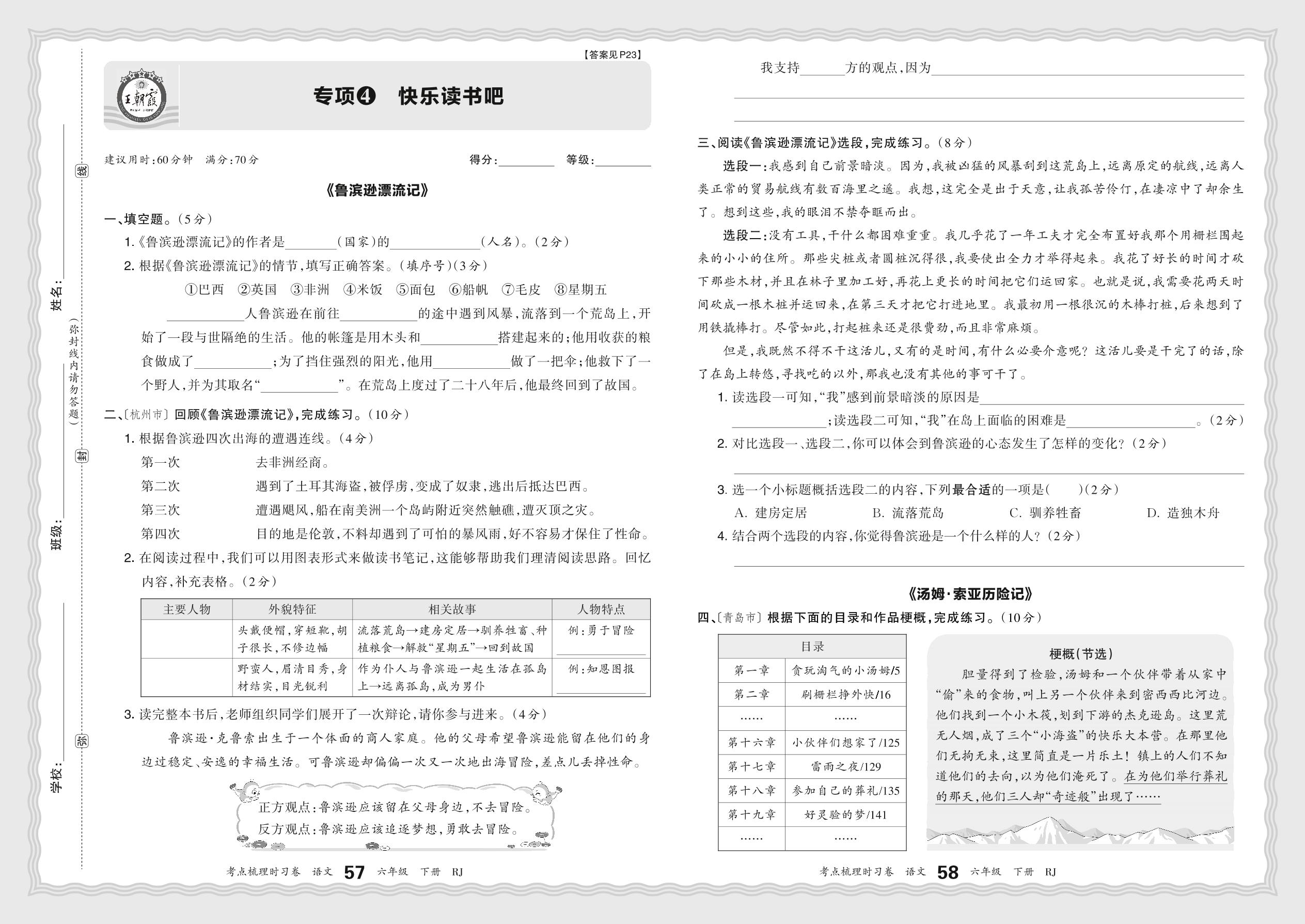 2024春下册六年级语文人教版 期末专项卷KD版·快乐读书吧【4】