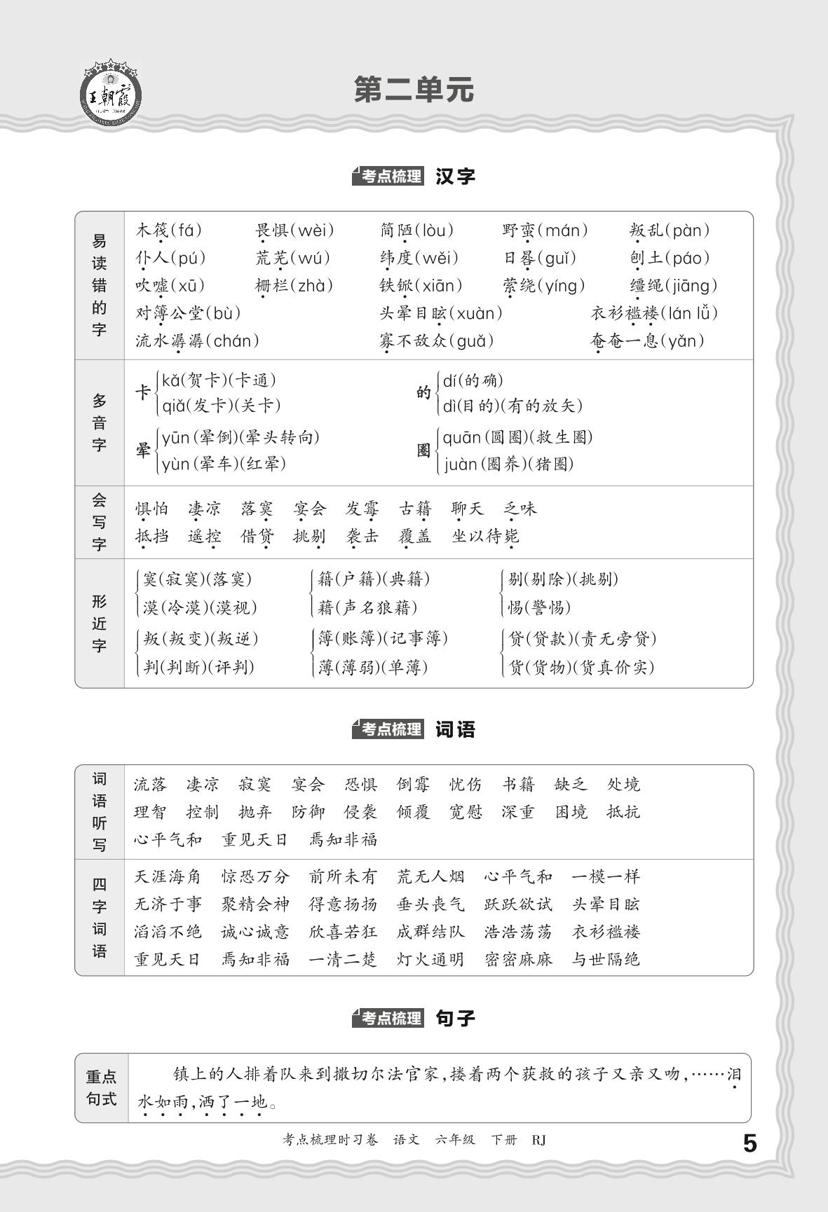 2024春下册六年级语文人教版 考点梳理手册——第二单元