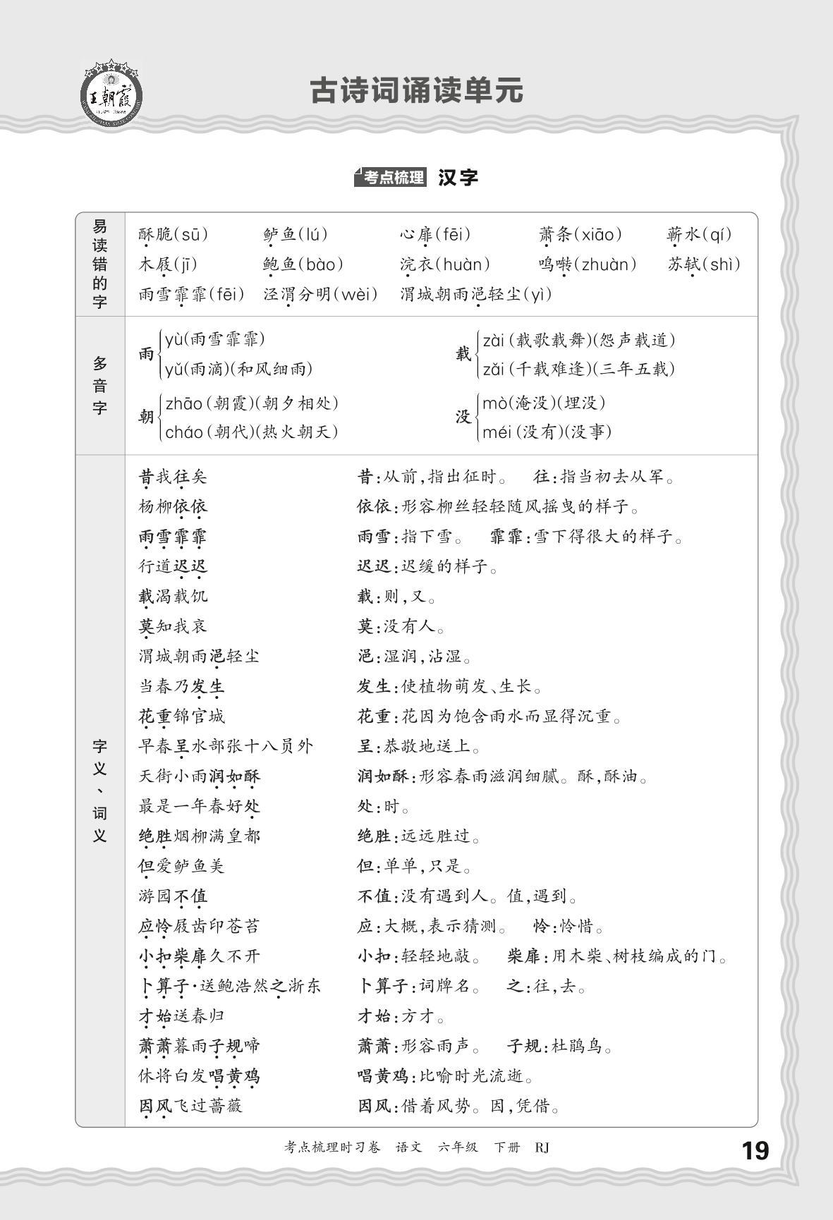 2024春下册六年级语文人教版 考点梳理手册——古诗词诵读单元