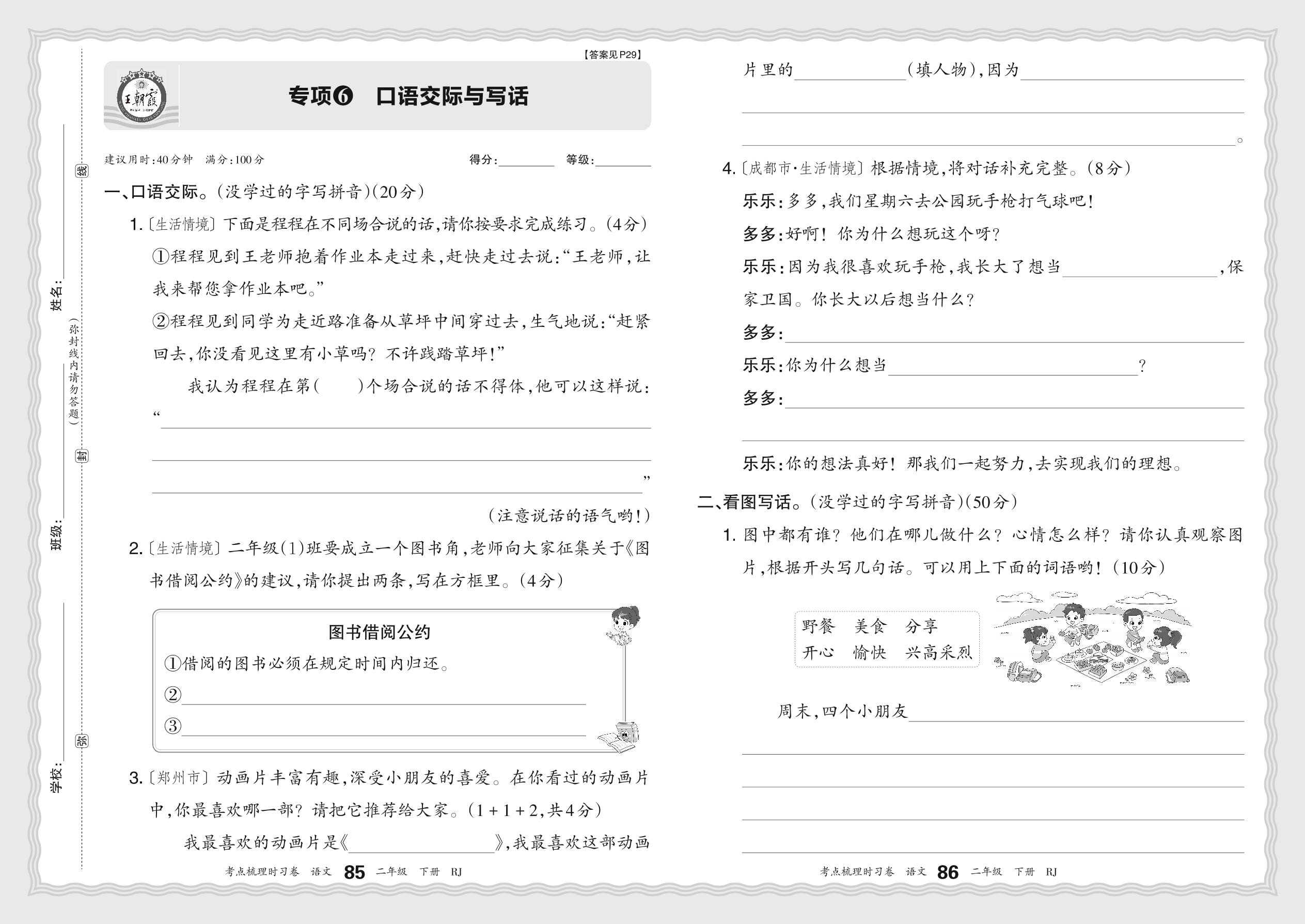 2024春下册二年级语文人教版 期末专项卷KD版·口语交际与写话【6】