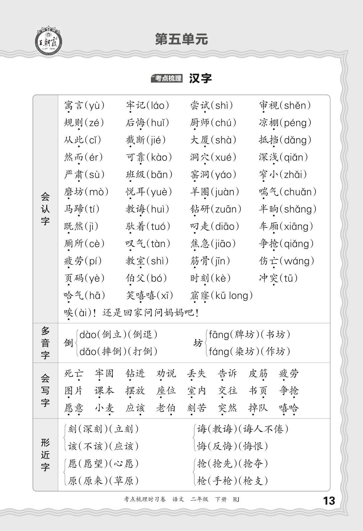 2024春下册二年级语文人教版 考点梳理手册——第五单元