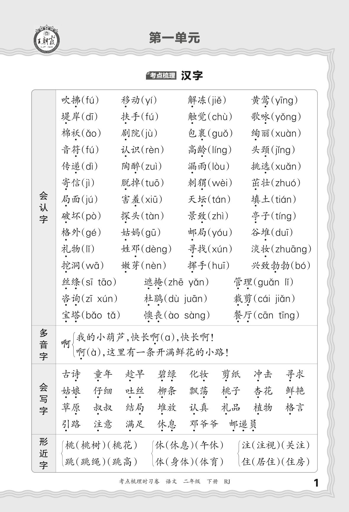 2024春下册二年级语文人教版 考点梳理手册——第一单元