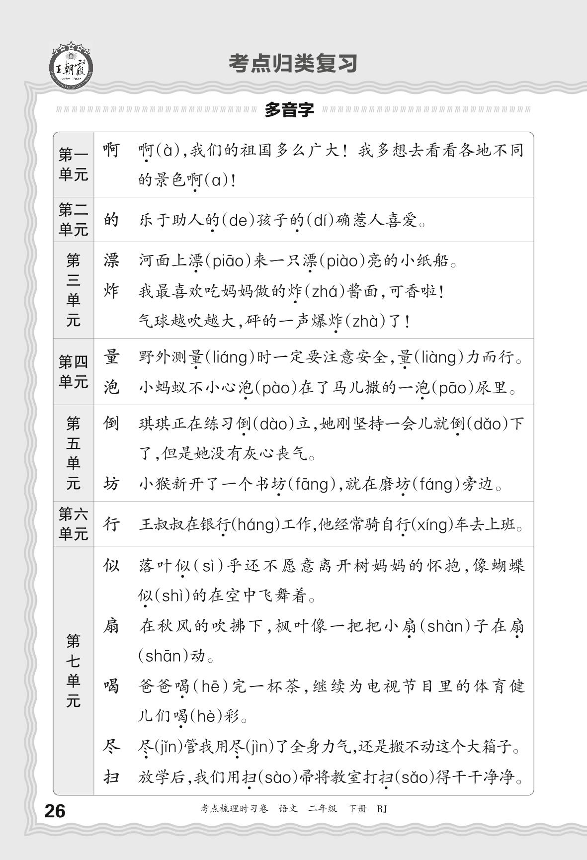 2024春下册二年级语文人教版 考点梳理手册——考点归类复习
