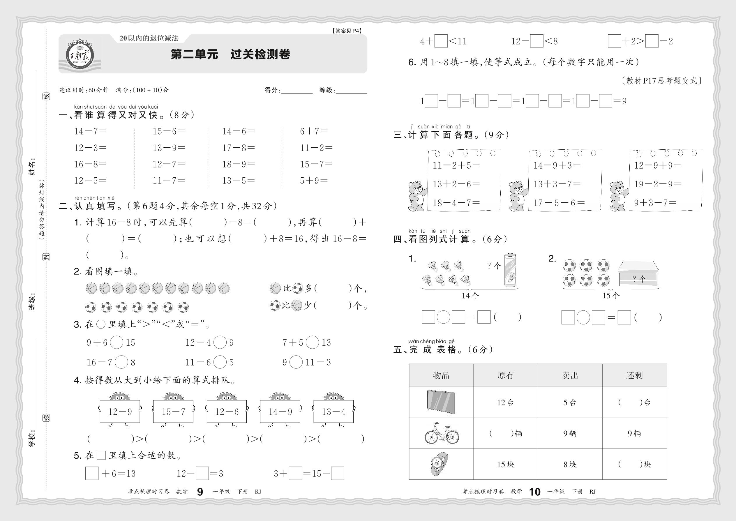 2024春下册一年级数学人教版 第二单元 过关检测卷