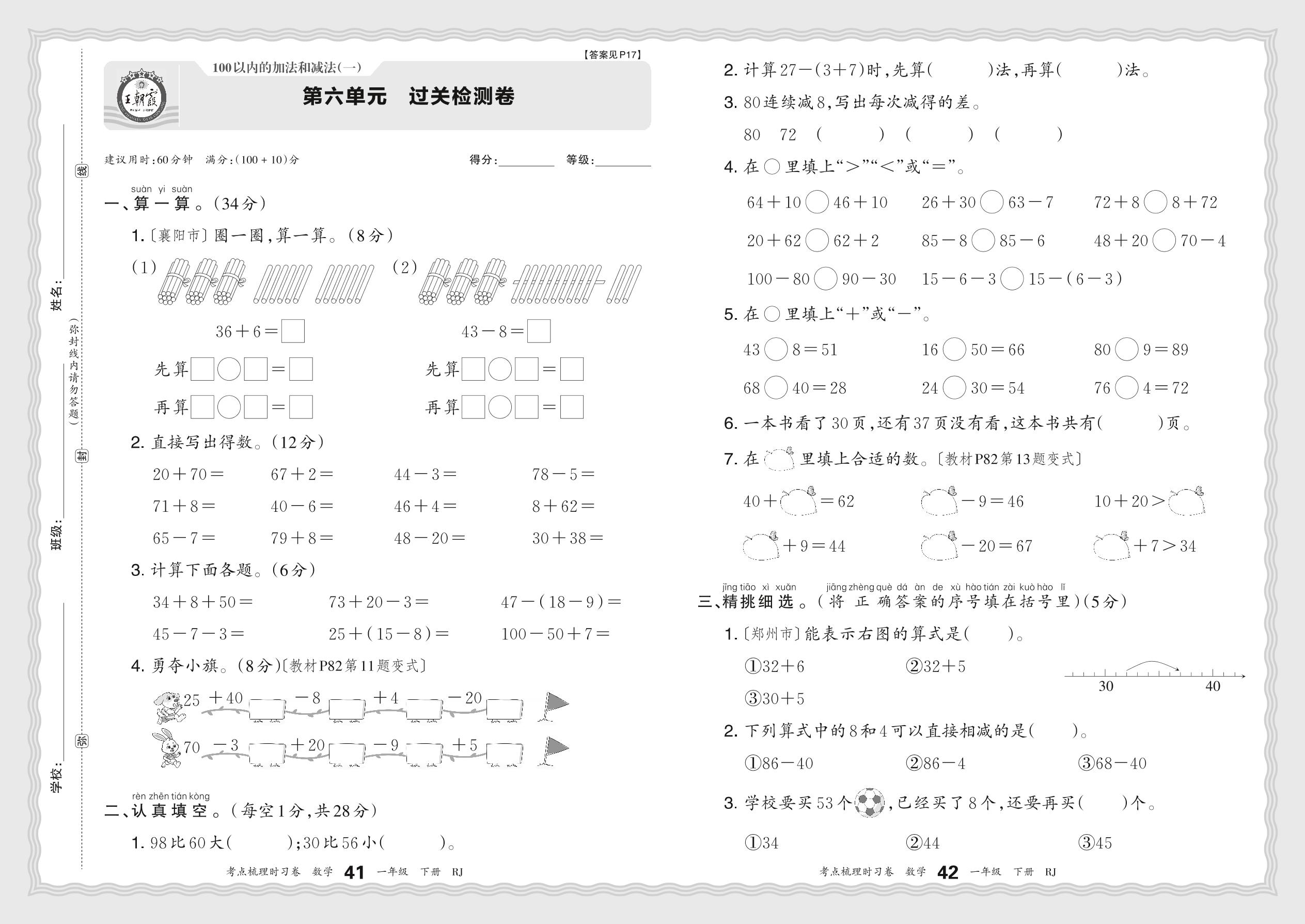 2024春下册一年级数学人教版 第六单元 过关检测卷