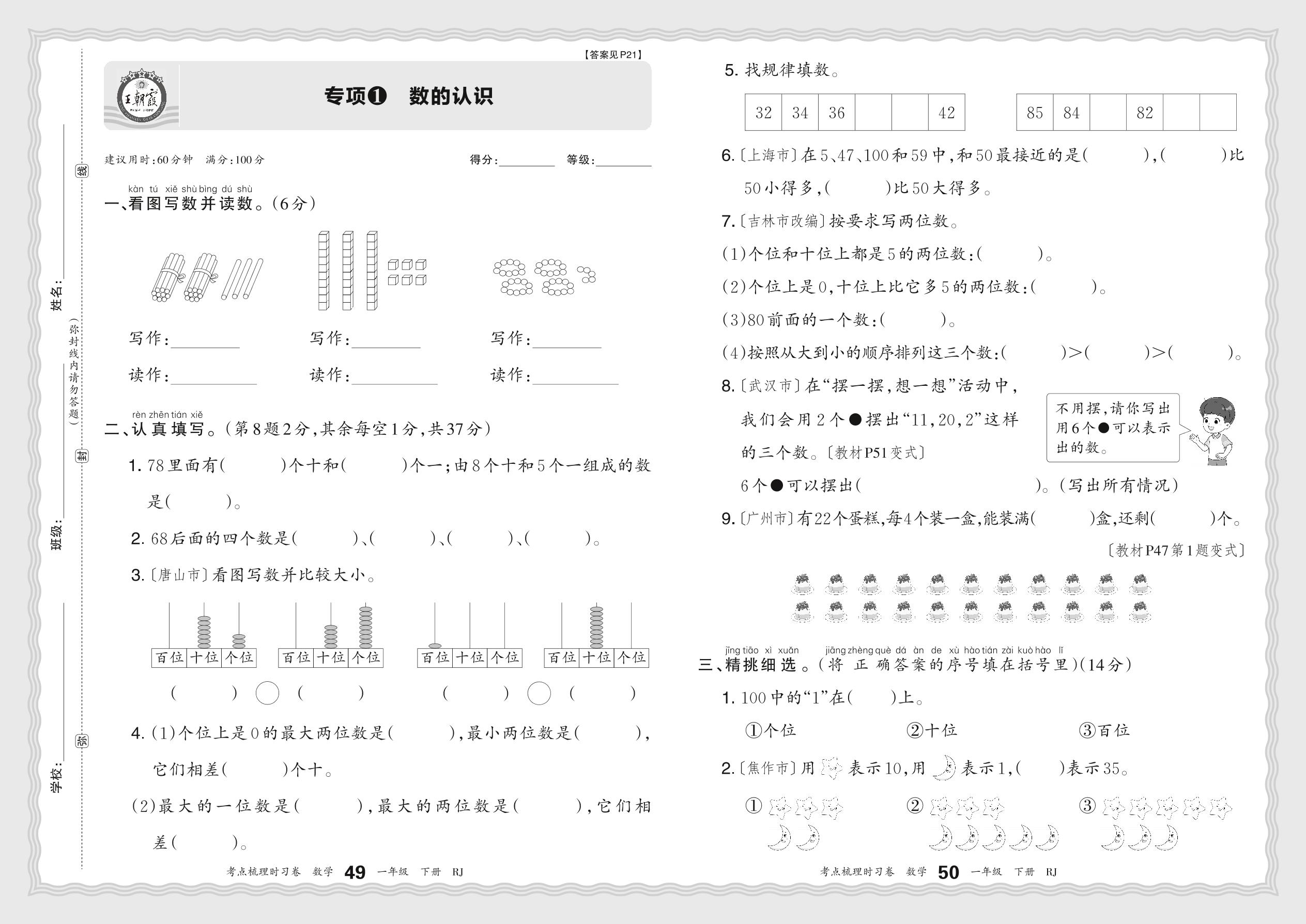 一年级数学人教版下册专项卷