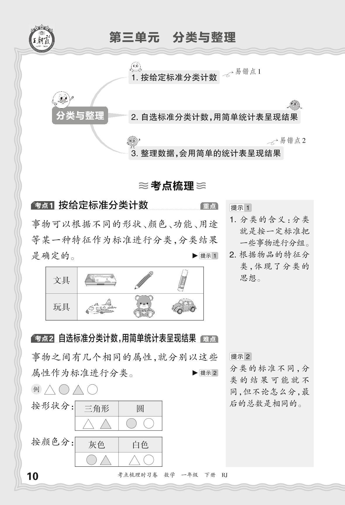 2024春下册一年级数学人教版 考点梳理手册——第三单元 分类与整理