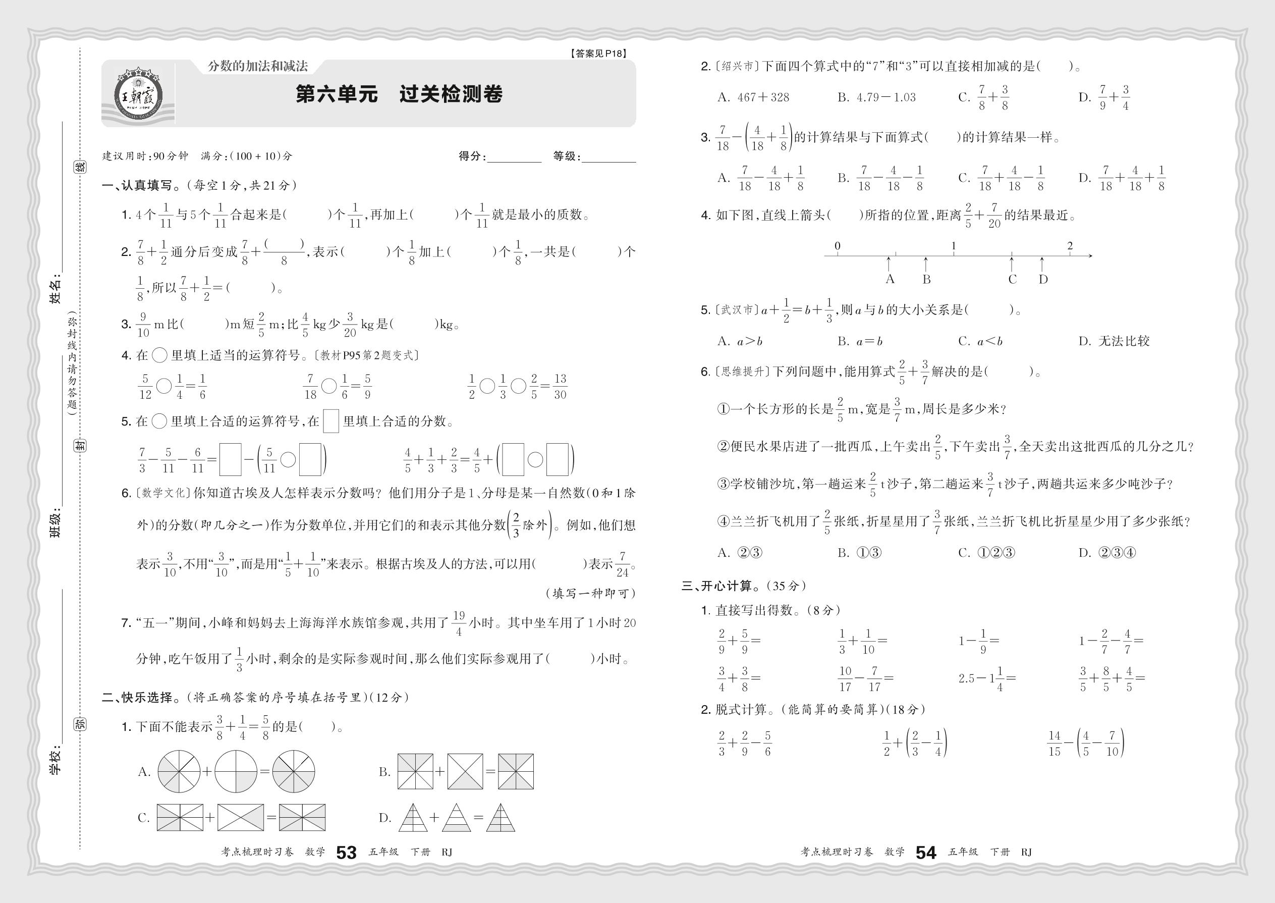 2024春下册五年级数学人教版 第六单元 过关检测卷