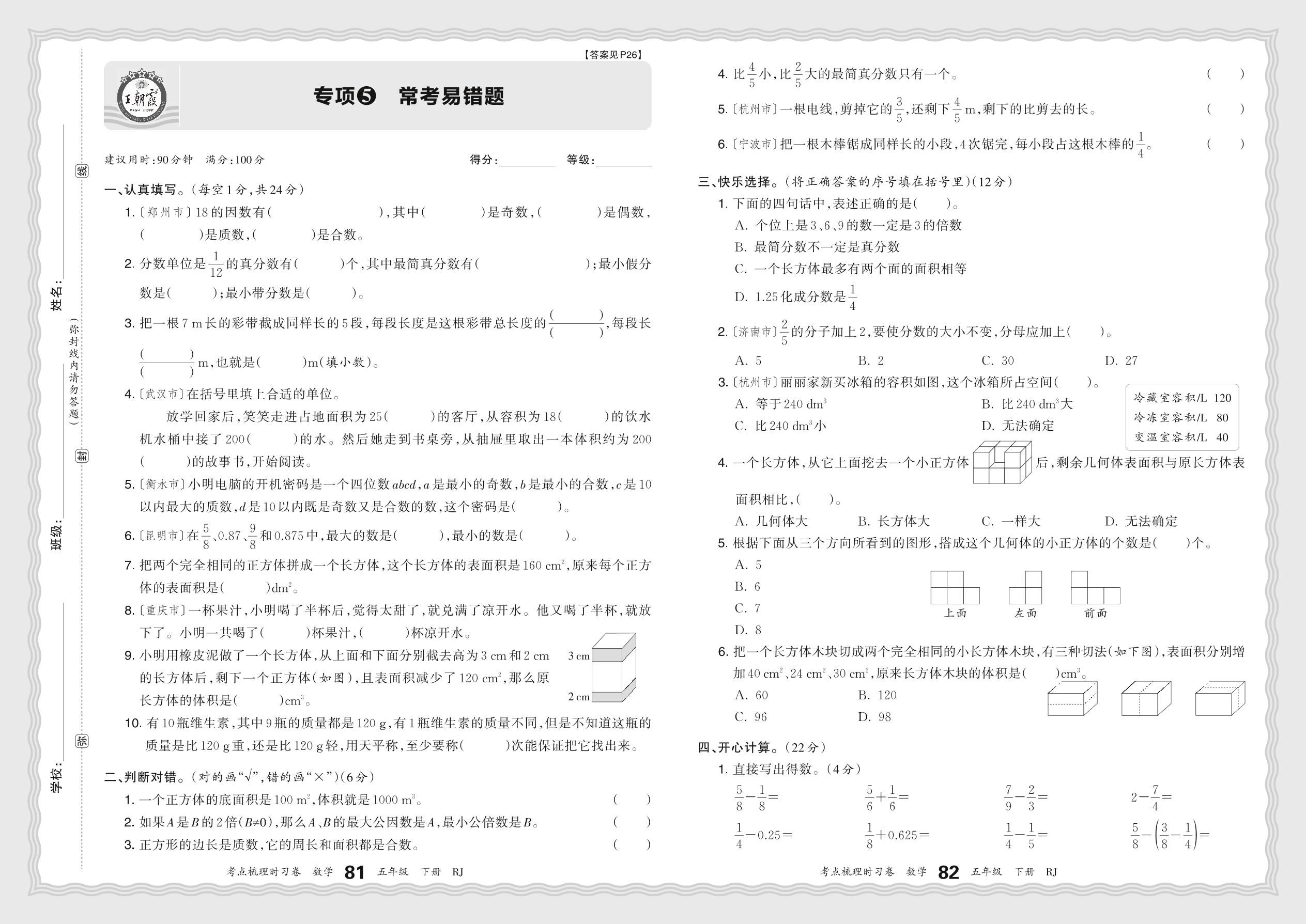 2024春下册五年级数学人教版 期末专项卷KD版·常考易错題【5】