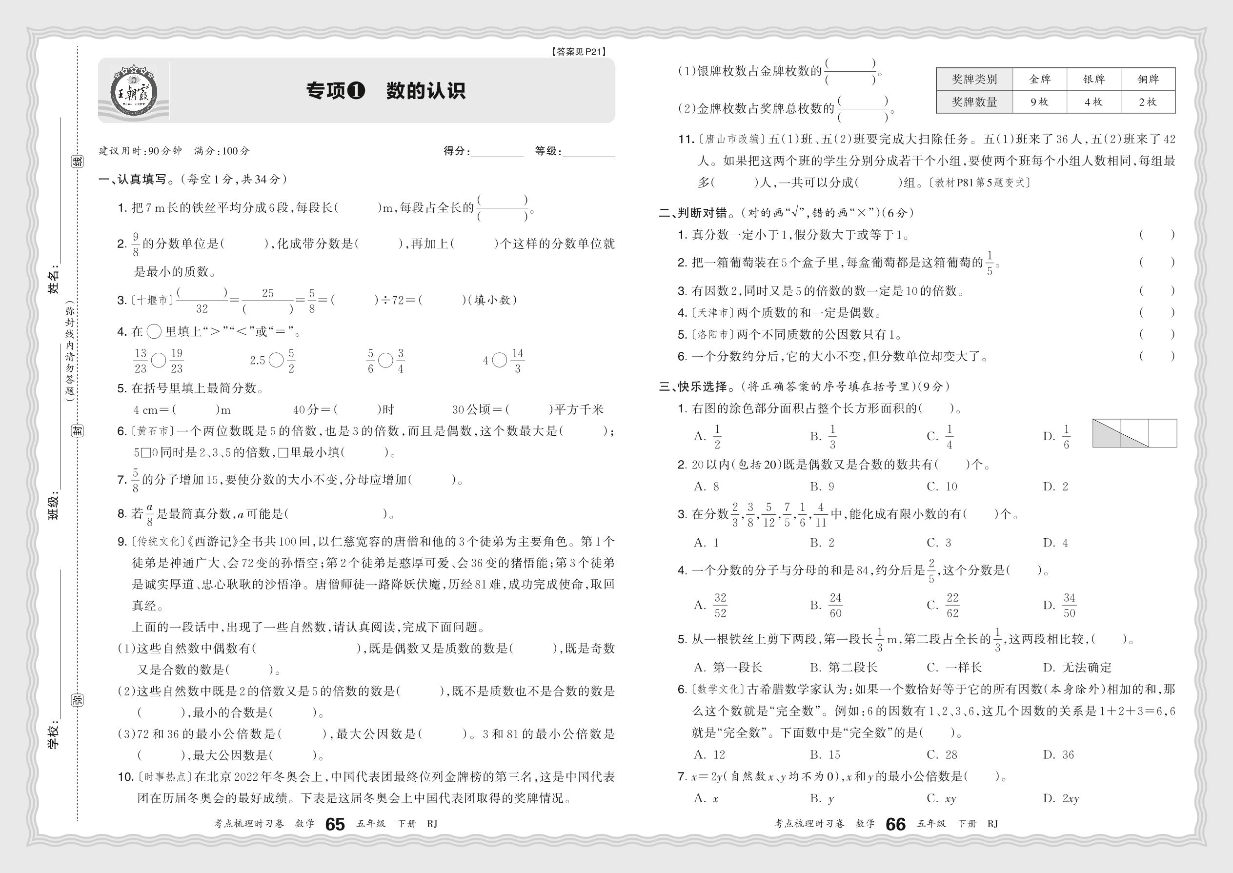 2024春下册五年级数学人教版 期末专项卷KD版·数的认识【1】