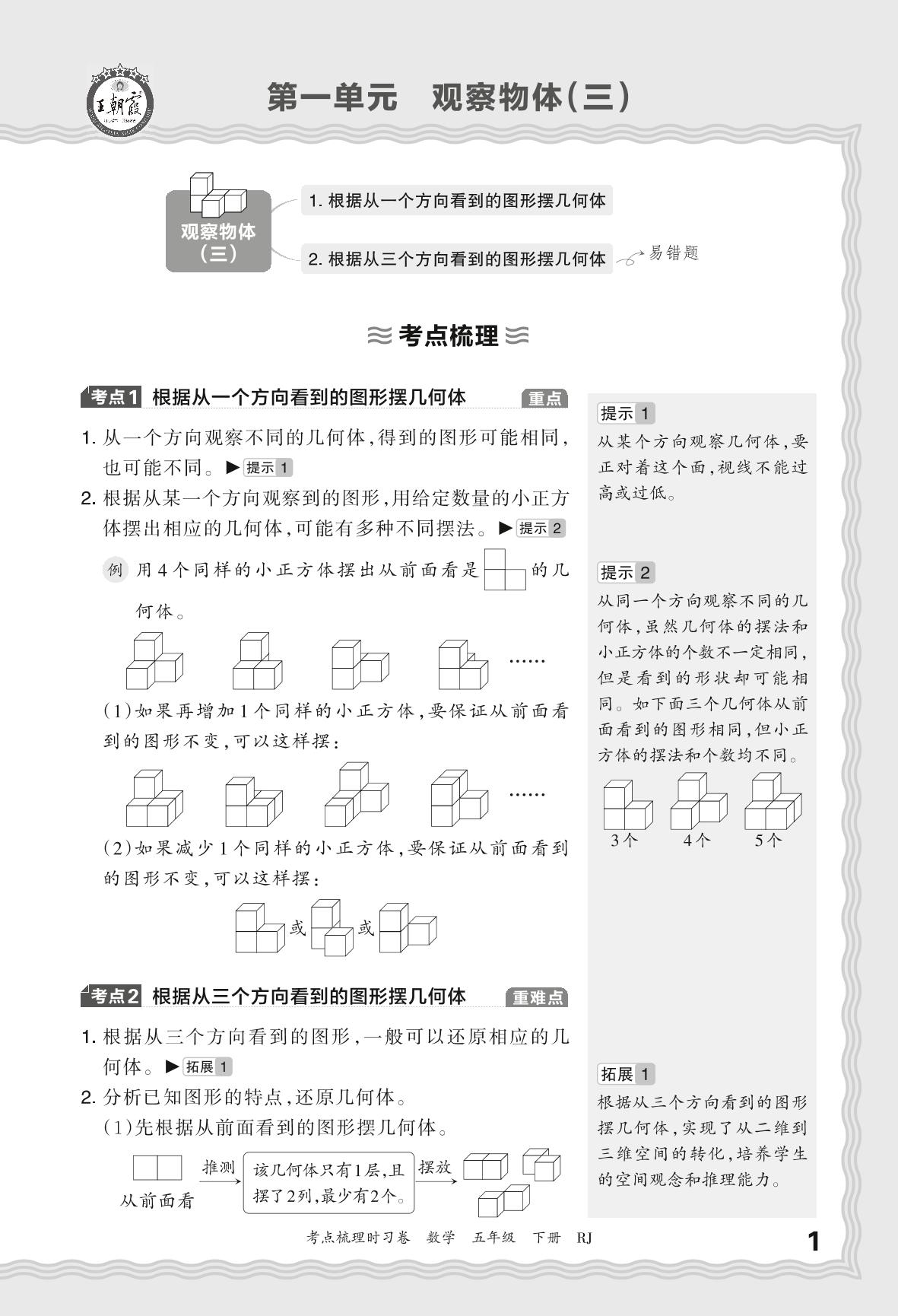 2024春下册五年级数学人教版 考点梳理手册——第一单元 观察物体(三)