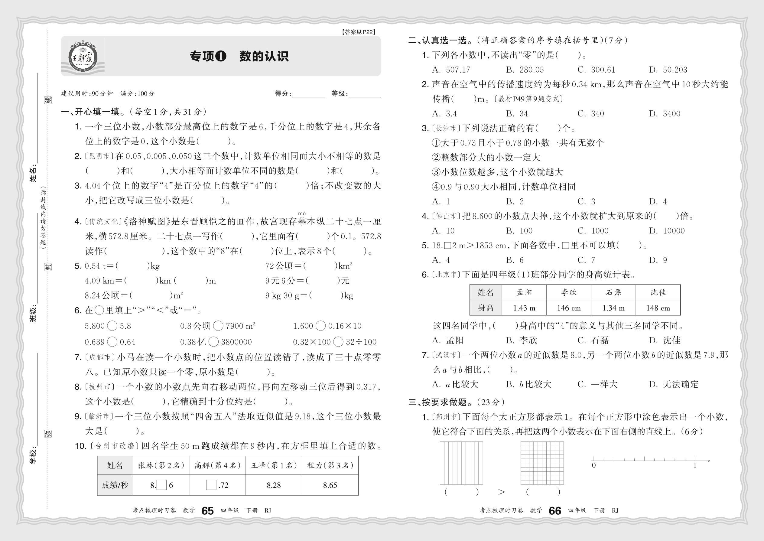 2024春下册四年级数学人教版 期末专项卷KD版·数的认识【1】