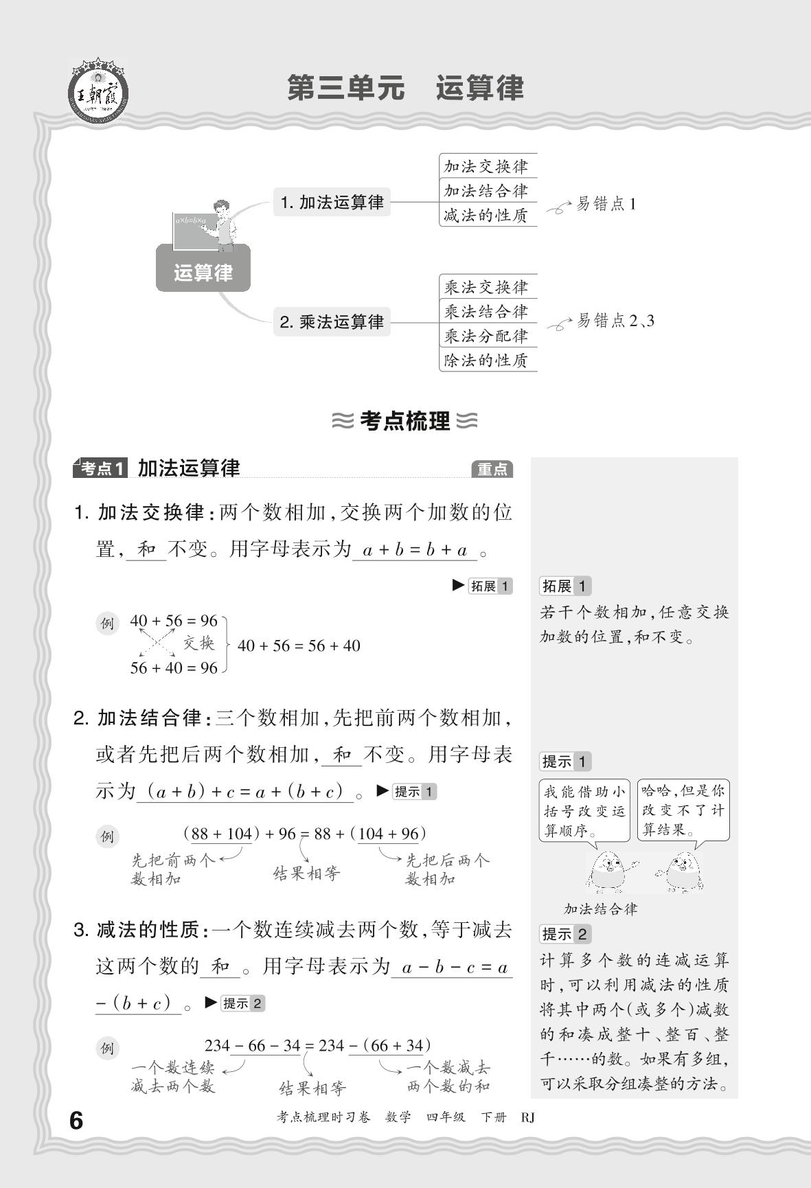 2024春下册四年级数学人教版 考点梳理手册——第三单元 运算律