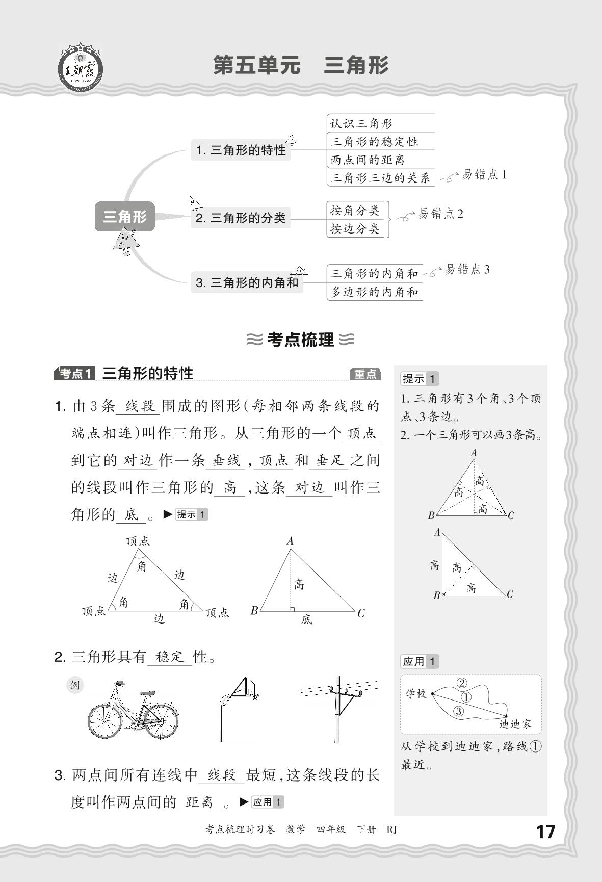 2024春下册四年级数学人教版 考点梳理手册——第五单元 三角形