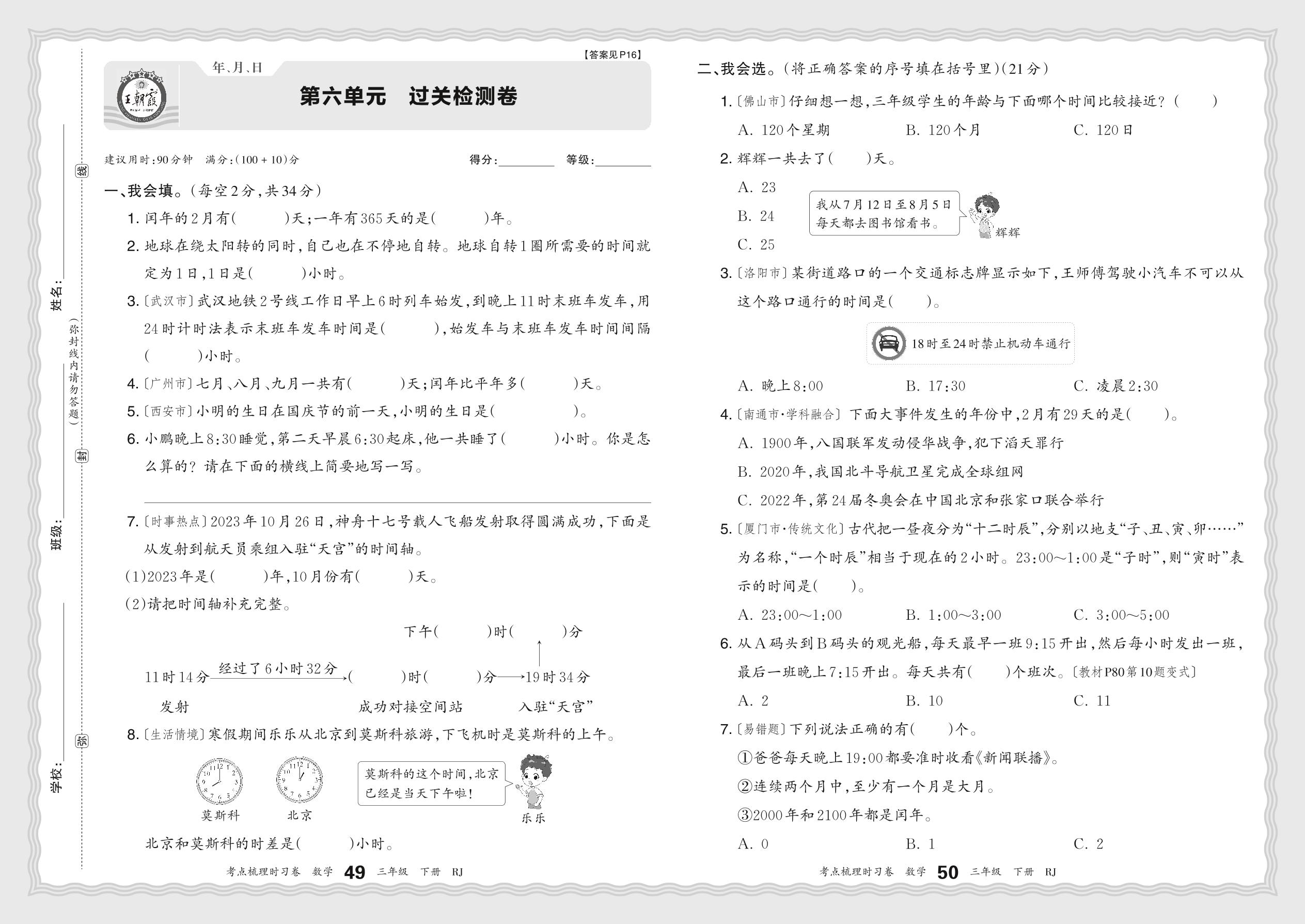 2024春下册三年级数学人教版 第六单元 过关检测卷