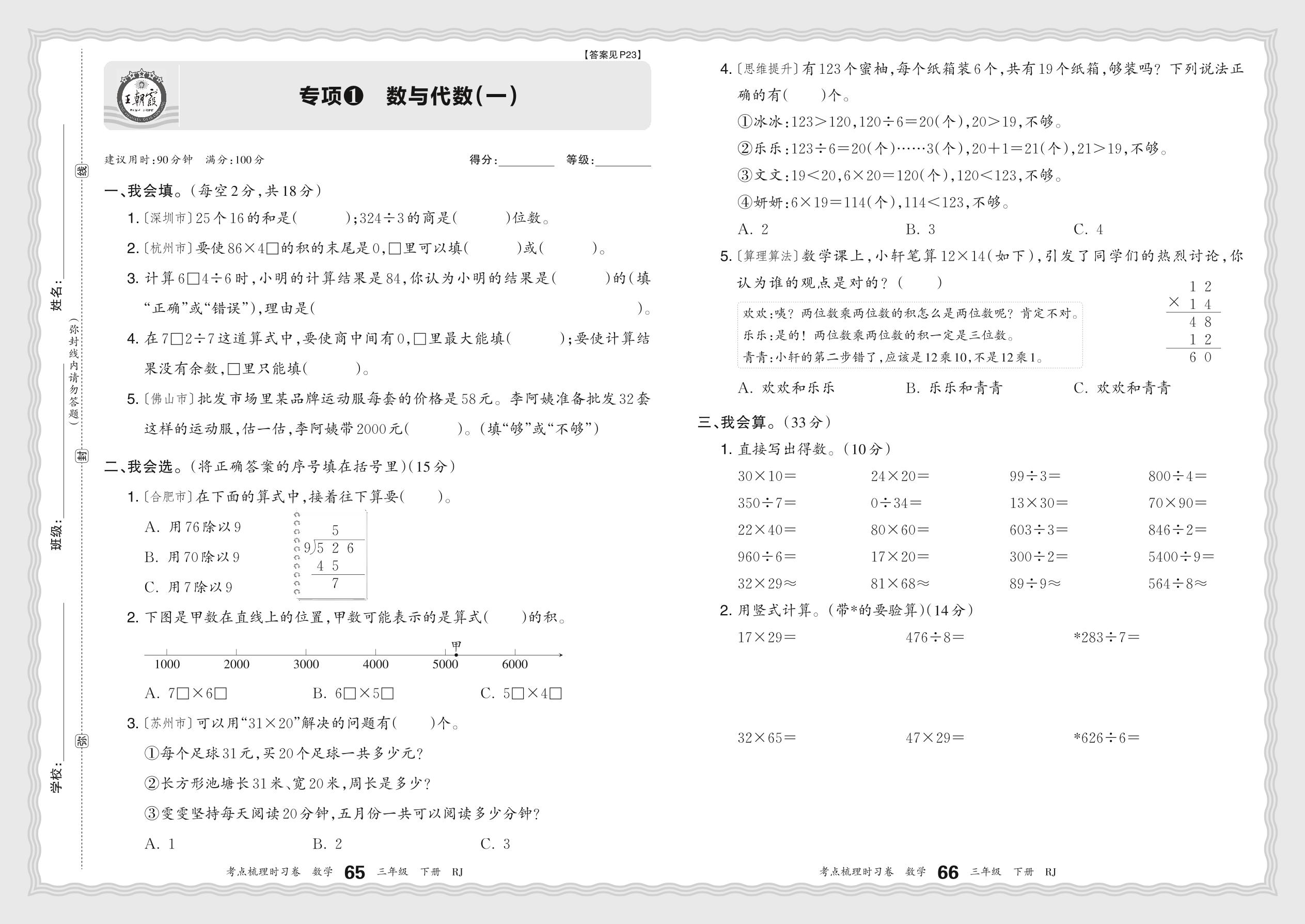 2024春下册三年级数学人教版 期末专项卷KD版·数与代数(一)【1】