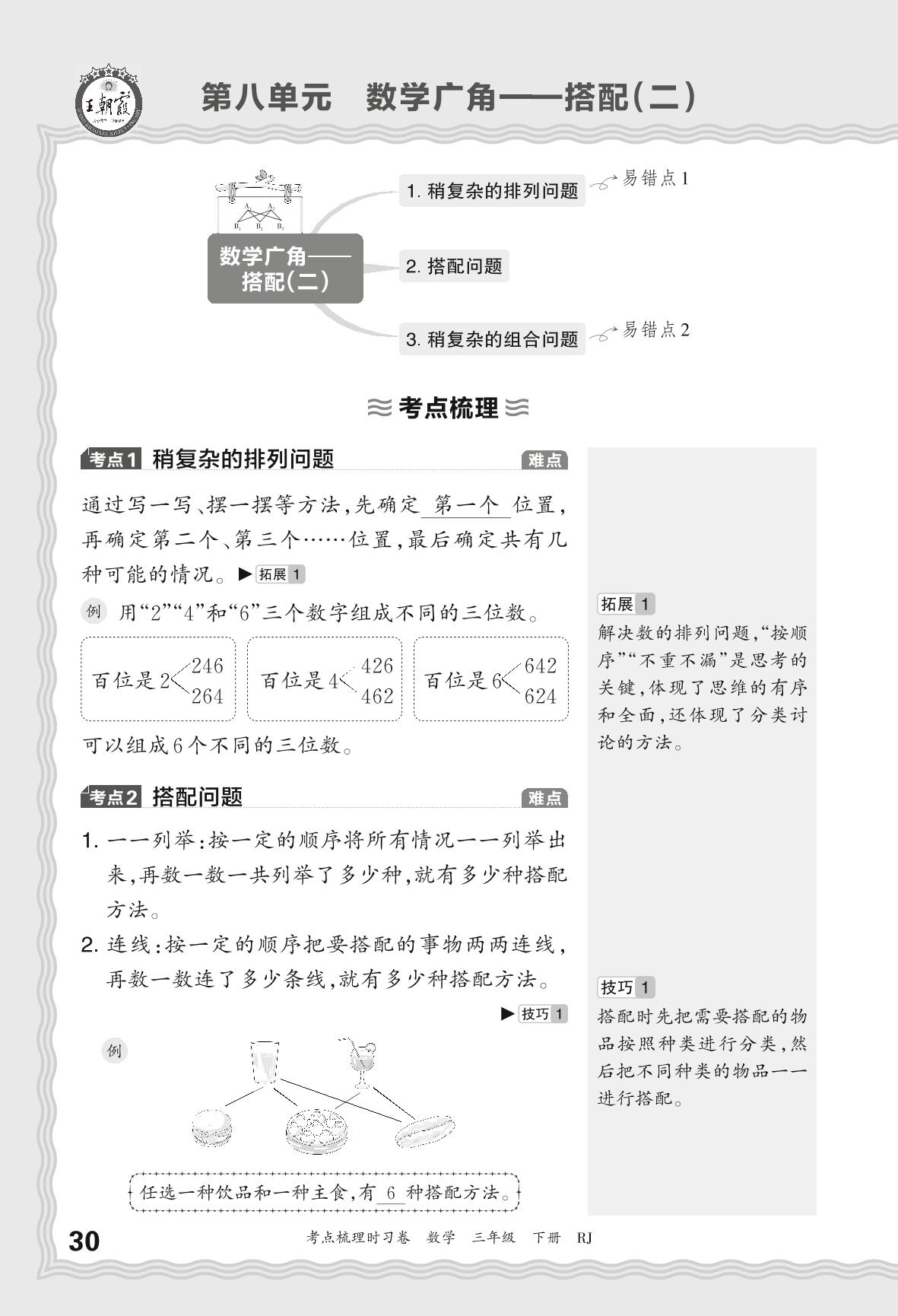 2024春下册三年级数学人教版 考点梳理手册——第八单元 数学广角 搭配(二)