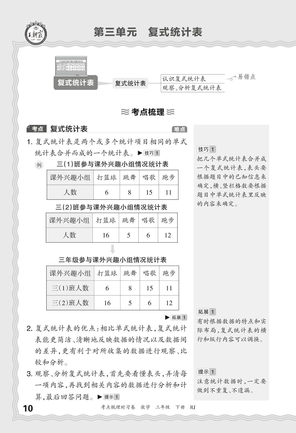 2024春下册三年级数学人教版 考点梳理手册——第三单元 复式统计表