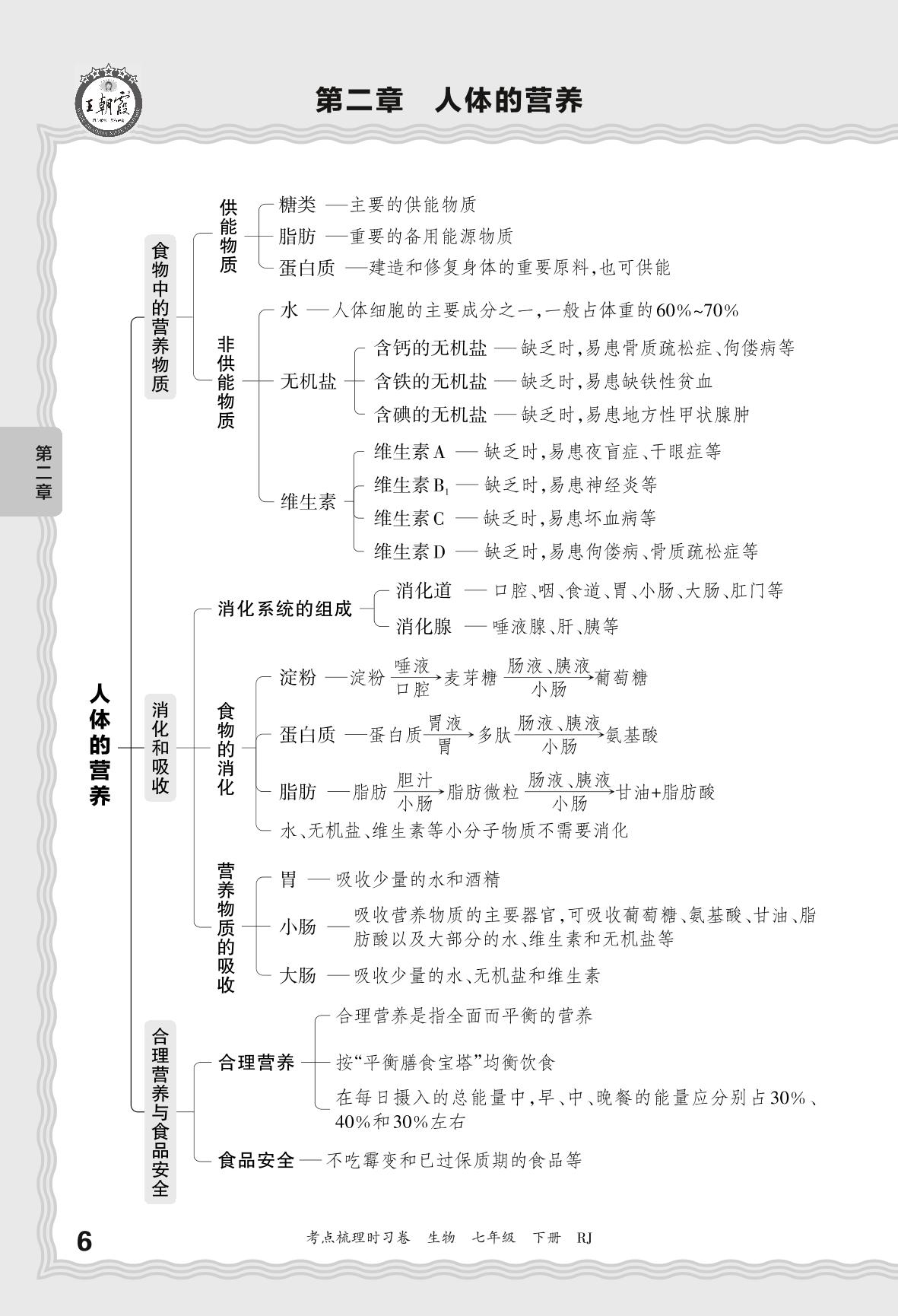 2024春下册七年级生物人教版 考点梳理手册——第二章 人体的营养