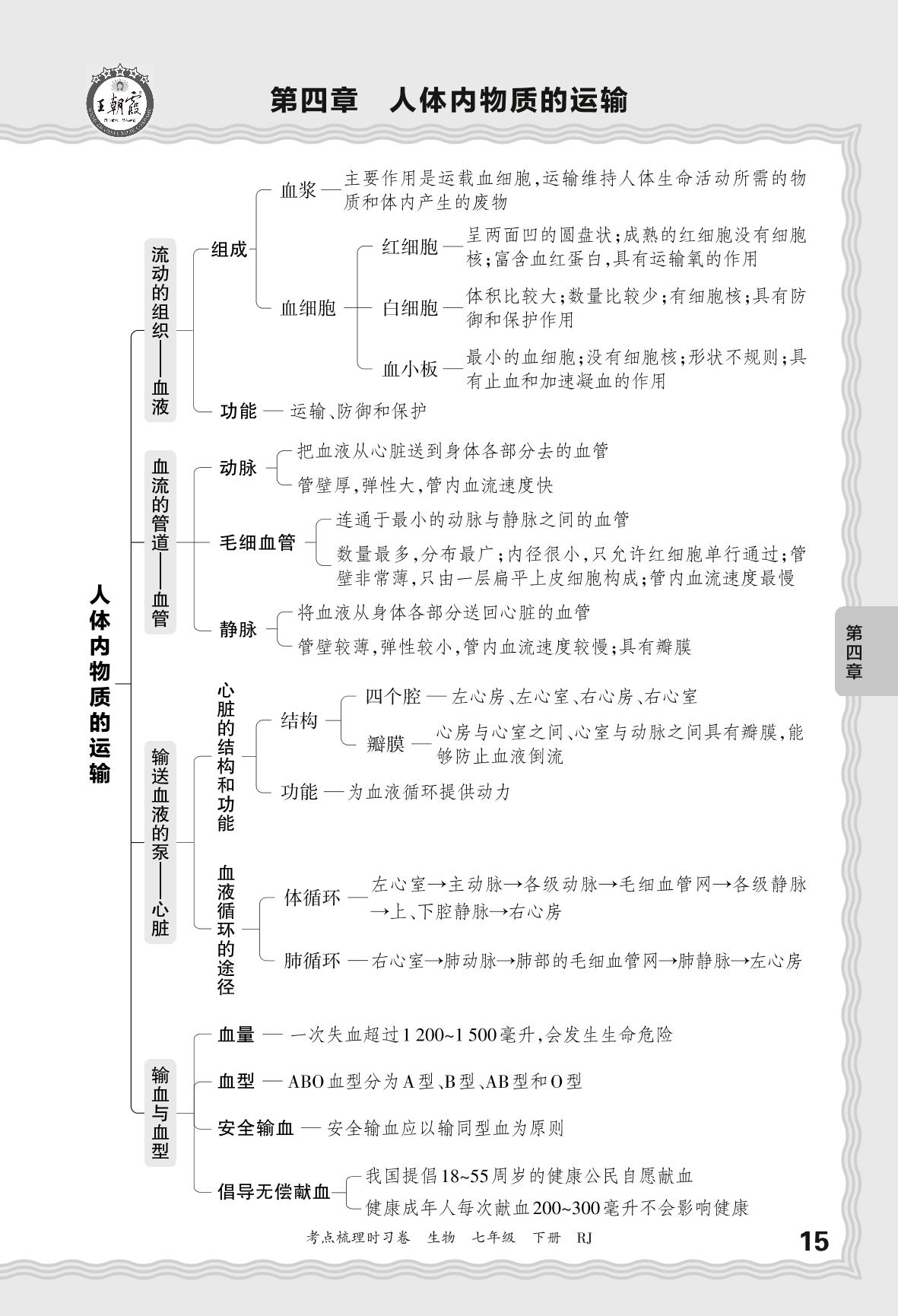 2024春下册七年级生物人教版 考点梳理手册——第四章 人体内物质的运输